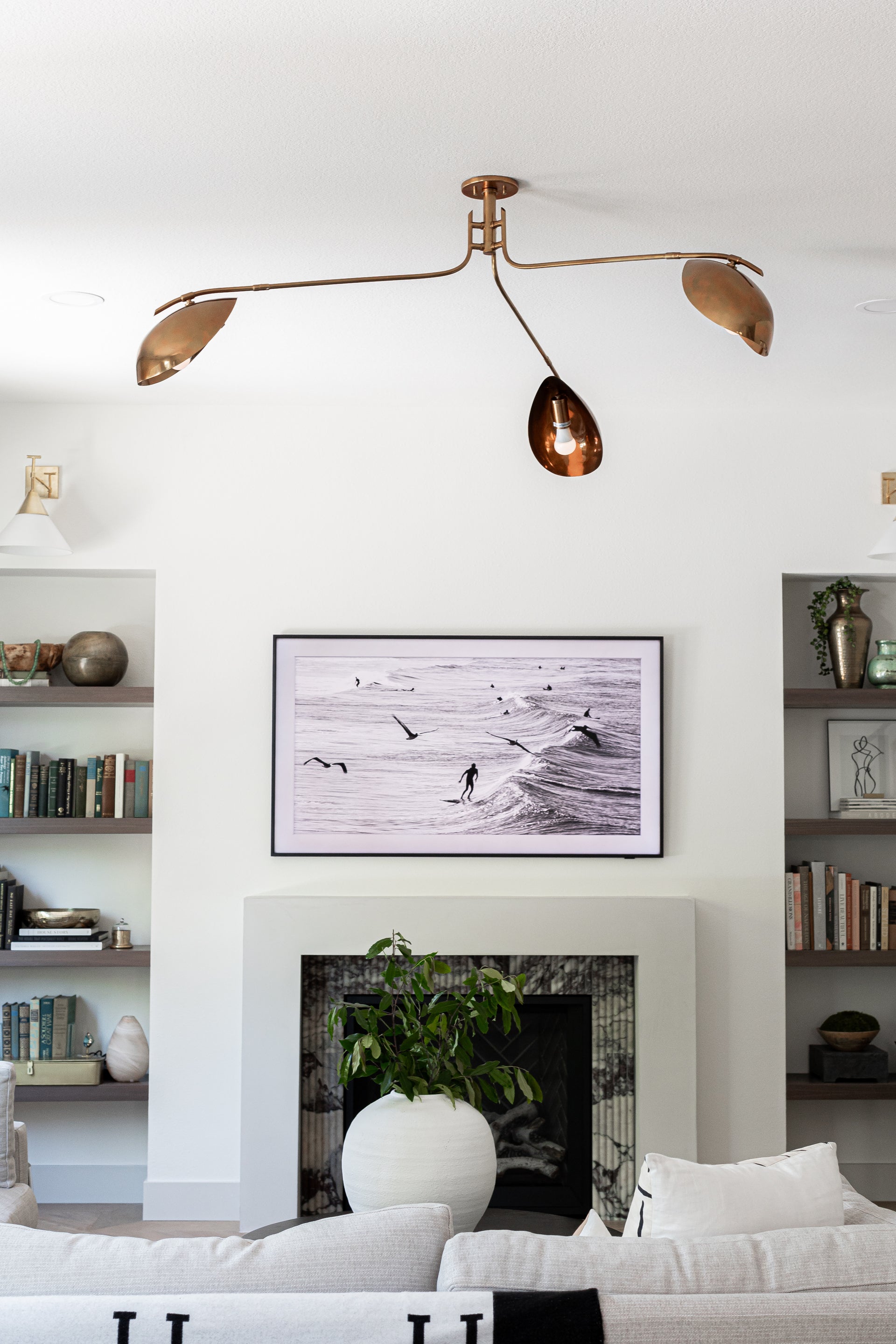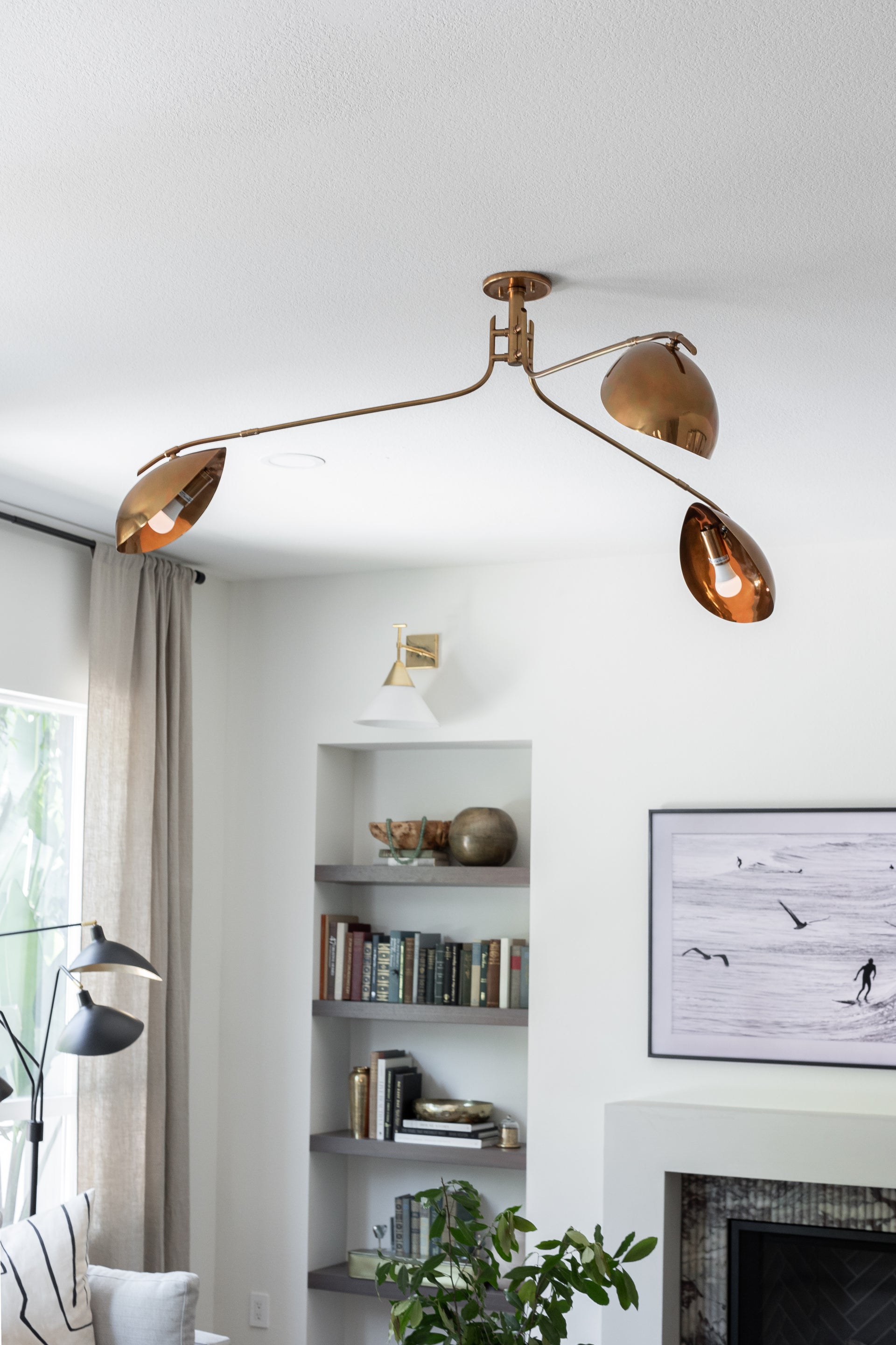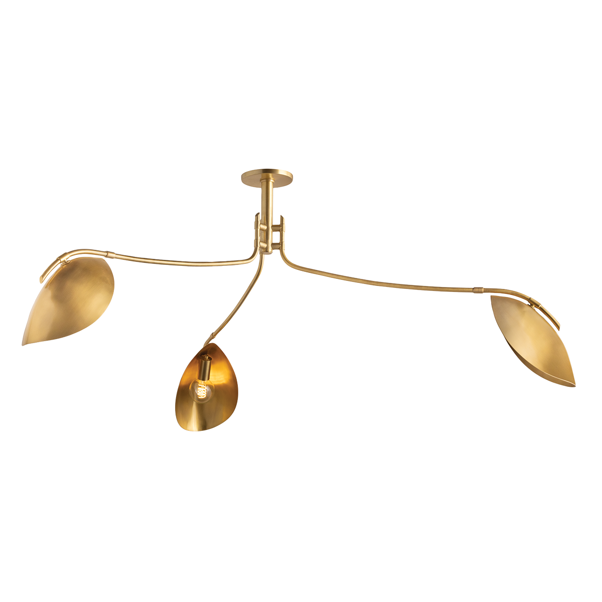 A stylized abstract leaf-shaped shade is formed of solid India brass, giving Avondale a natural hand-made quality. The mid-century modern silhouette is design-forward and organic, making for a versatile design that feels at home in various design styles. The 1-light wall sconce casts a soothing glow on the wall behind, while each shade on the 3-light semi-flush rotates 180 degrees.