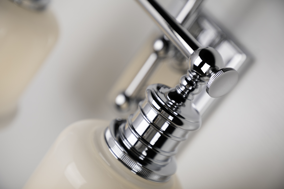 Keswick’s combination of strength and refinement is equally at home in a country manor or an urban apartment. We double-mount the sconce’s gooseneck arm to create a durable and appealing design. Bell-shaped glass, cast swivels, and straight-line knurling on the socket holders enhance Keswick’s vintage character.