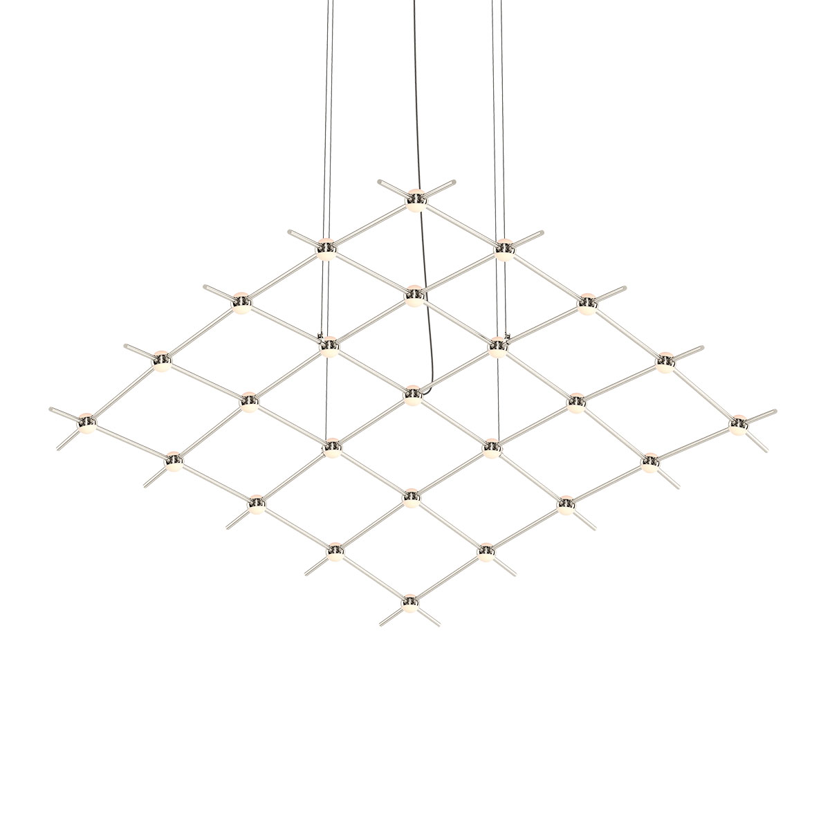 LED hubs connected in linear strands of various lengths are suspended to form dramatically powerful luminance within a vertical space. Available in a variety of sizes and configurations, with lens options of crystal facets or soft white, Constellation Andromeda can also be customized for your project.
