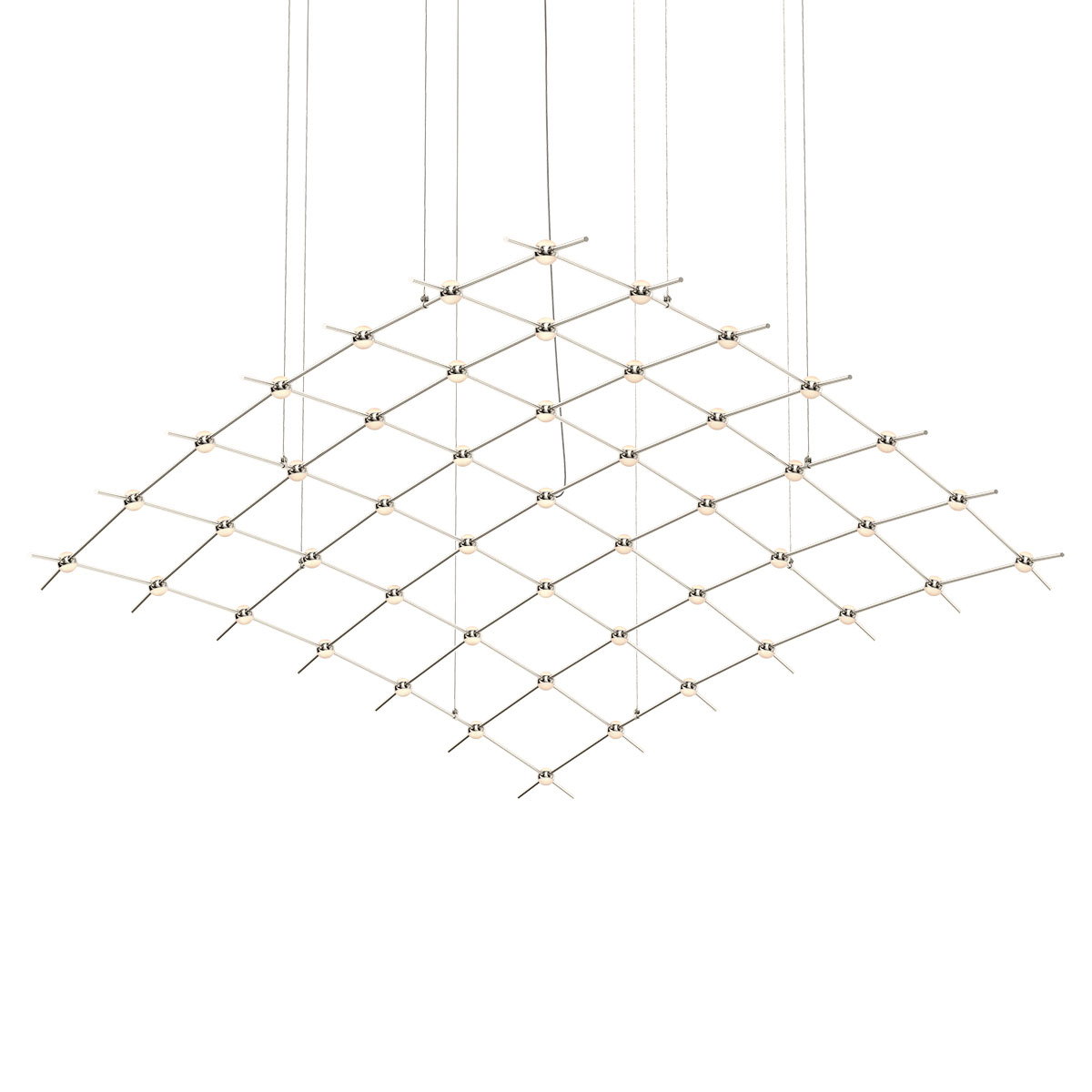 LED hubs connected in linear strands of various lengths are suspended to form dramatically powerful luminance within a vertical space. Available in a variety of sizes and configurations, with lens options of crystal facets or soft white, Constellation Andromeda can also be customized for your project.