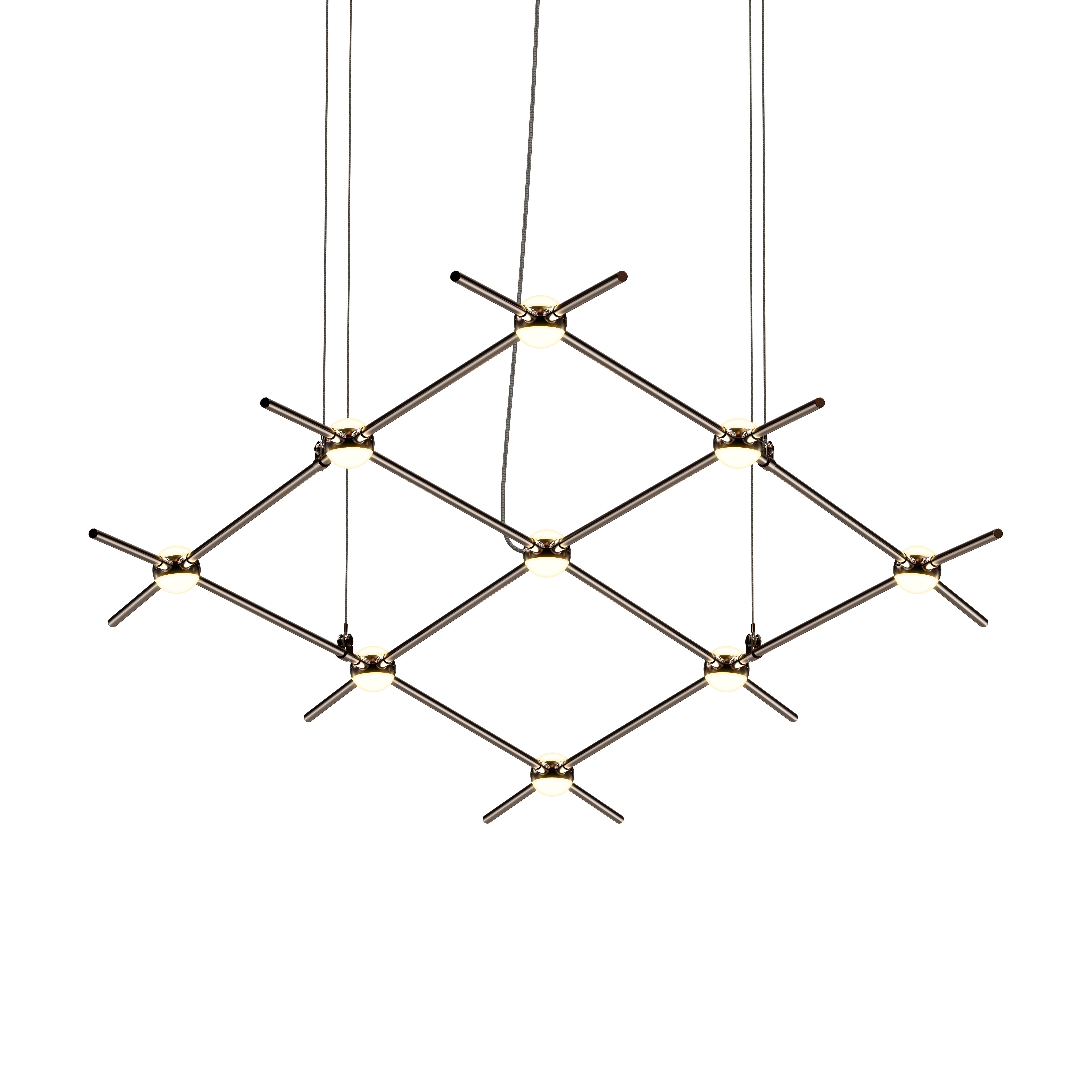 LED hubs connected in linear strands of various lengths are suspended to form dramatically powerful luminance within a vertical space. Available in a variety of sizes and configurations, with lens options of crystal facets or soft white, Constellation Andromeda can also be customized for your project.