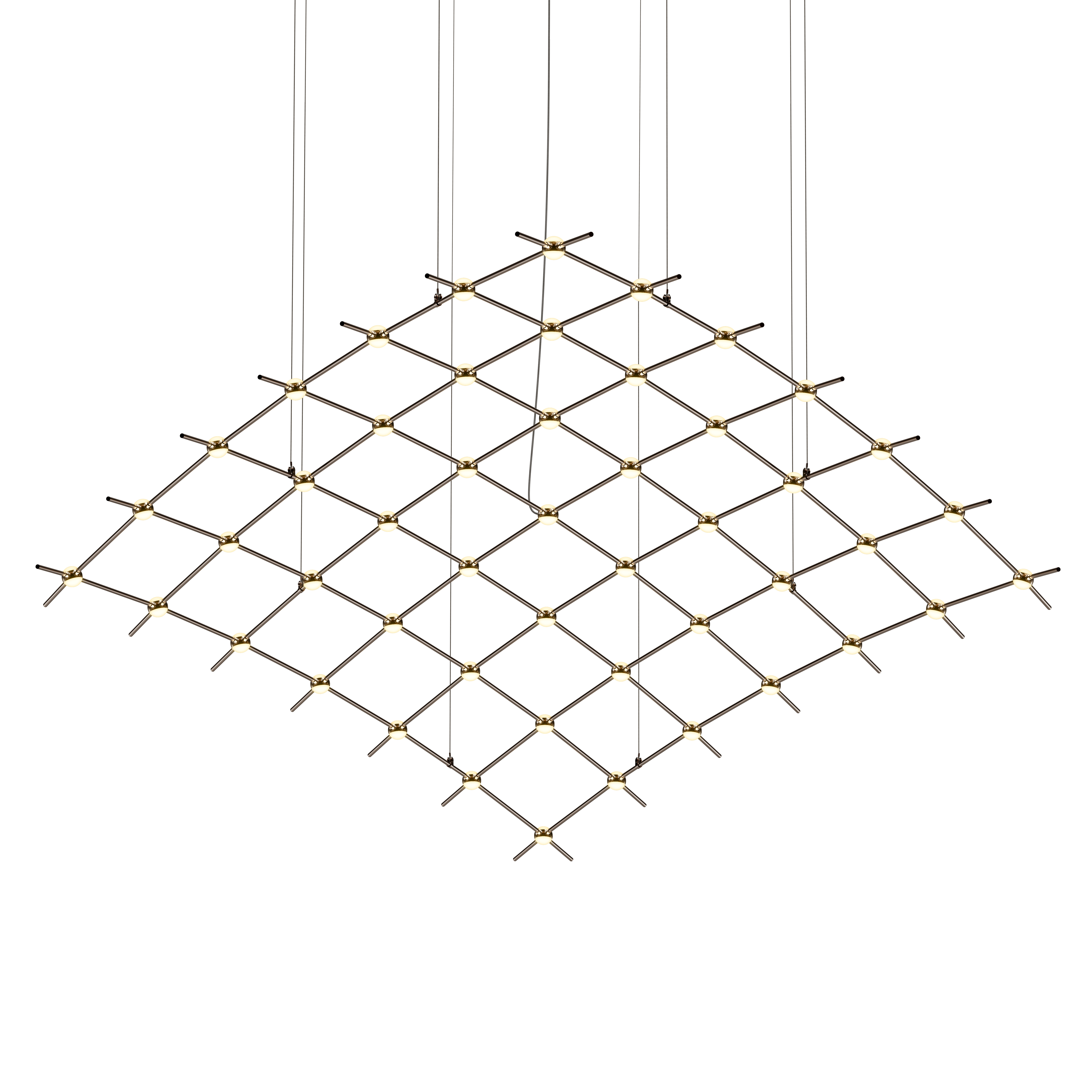 LED hubs connected in linear strands of various lengths are suspended to form dramatically powerful luminance within a vertical space. Available in a variety of sizes and configurations, with lens options of crystal facets or soft white, Constellation Andromeda can also be customized for your project.