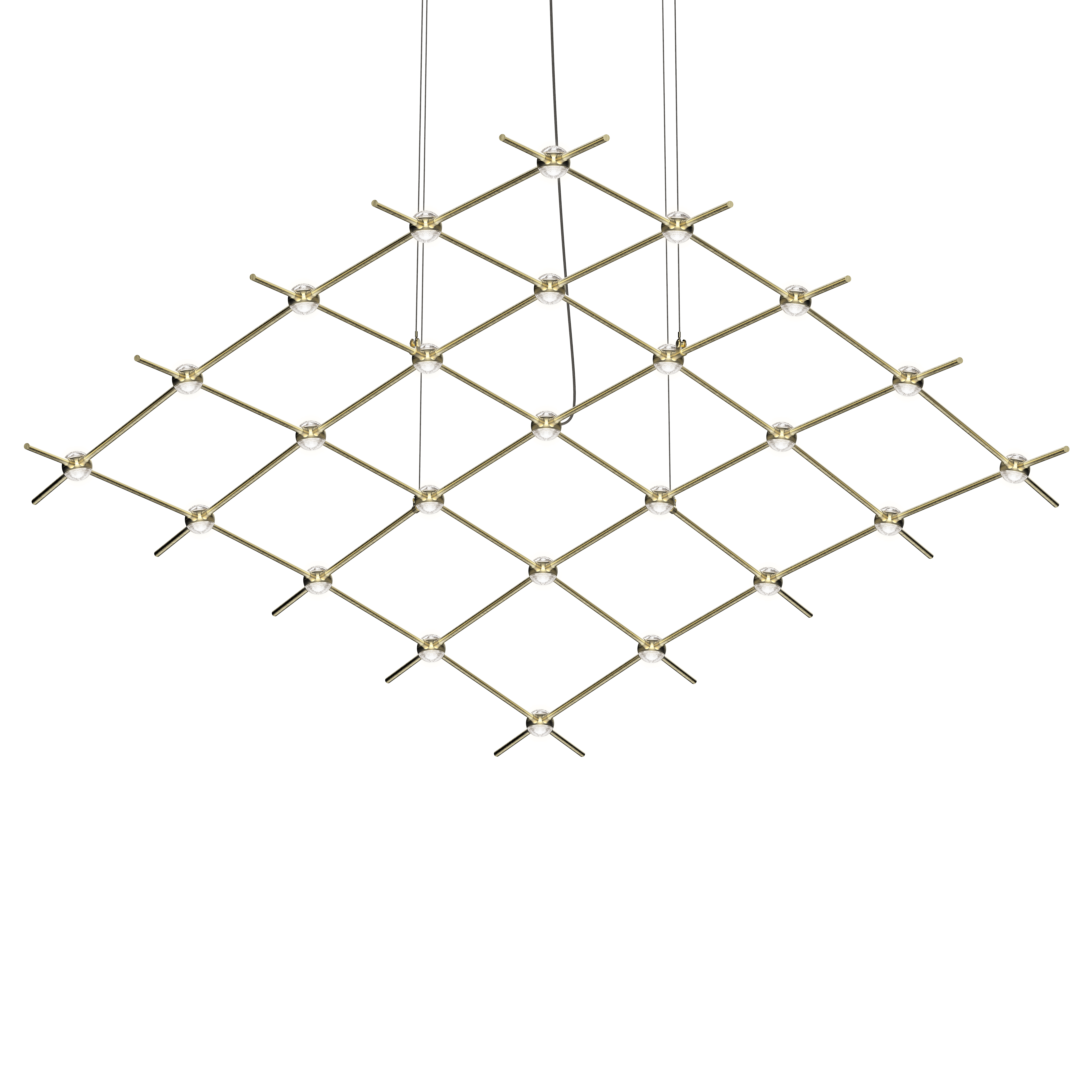 LED hubs connected in linear strands of various lengths are suspended to form dramatically powerful luminance within a vertical space. Available in a variety of sizes and configurations, with lens options of crystal facets or soft white, Constellation Andromeda can also be customized for your project.
