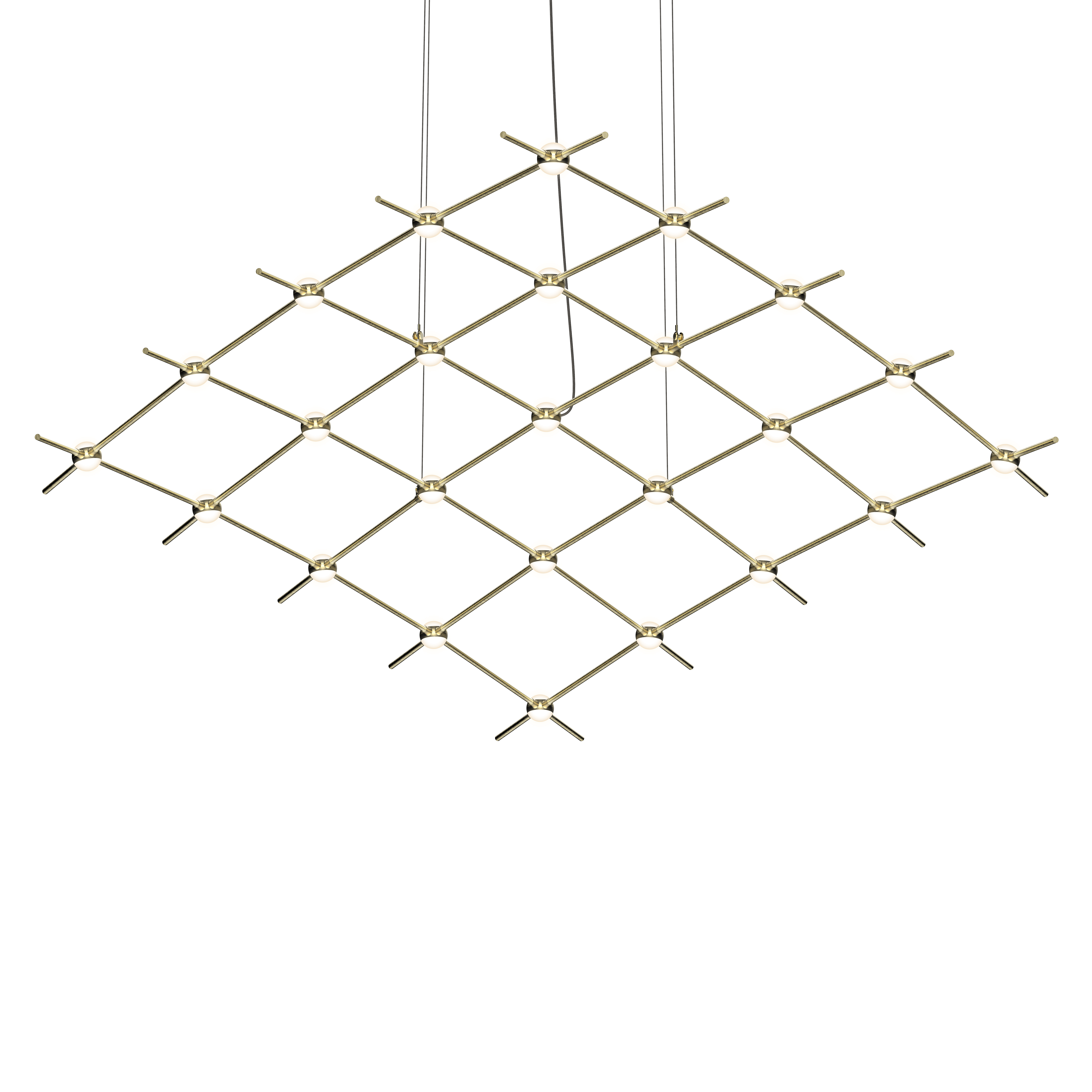 LED hubs connected in linear strands of various lengths are suspended to form dramatically powerful luminance within a vertical space. Available in a variety of sizes and configurations, with lens options of crystal facets or soft white, Constellation Andromeda can also be customized for your project.