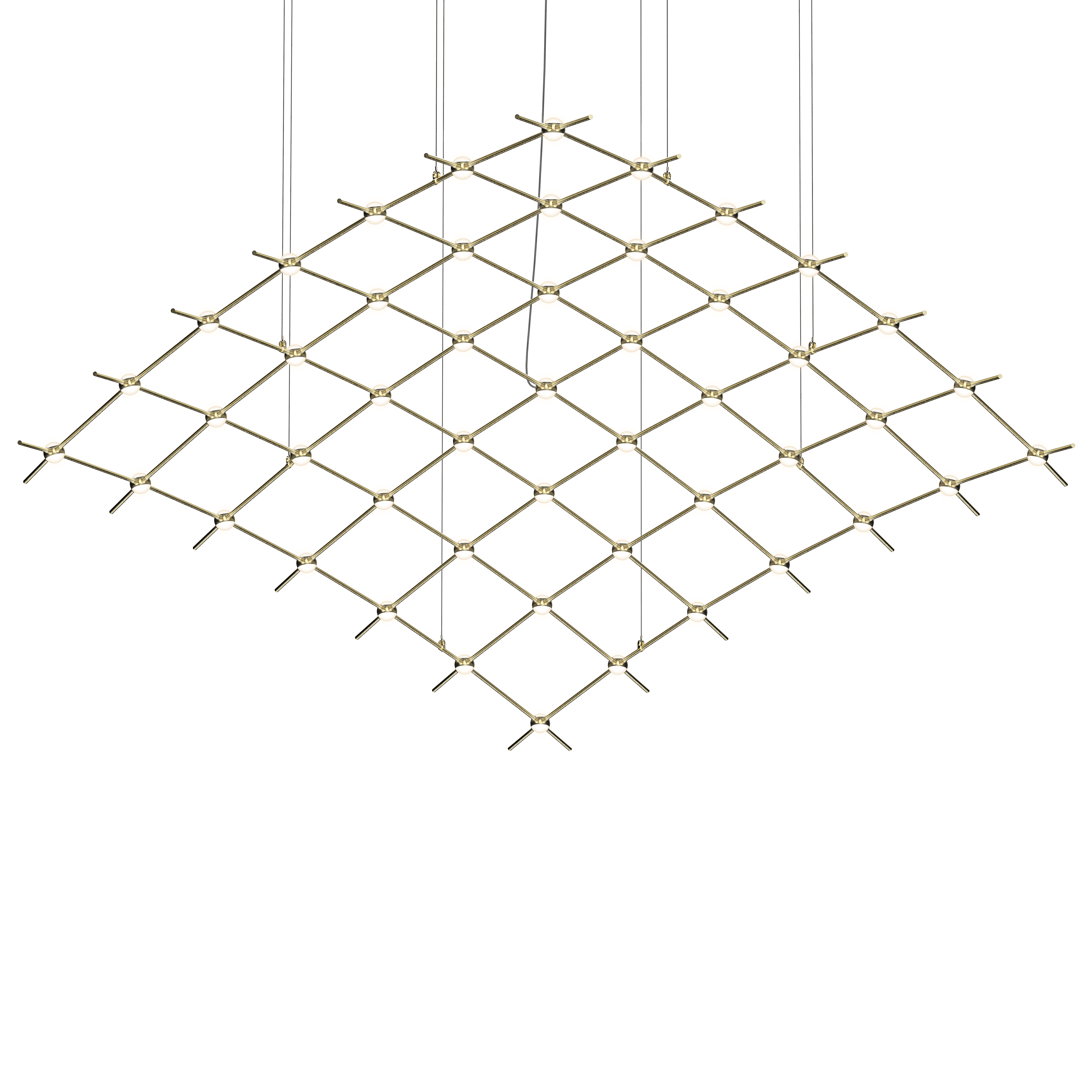 LED hubs connected in linear strands of various lengths are suspended to form dramatically powerful luminance within a vertical space. Available in a variety of sizes and configurations, with lens options of crystal facets or soft white, Constellation Andromeda can also be customized for your project.