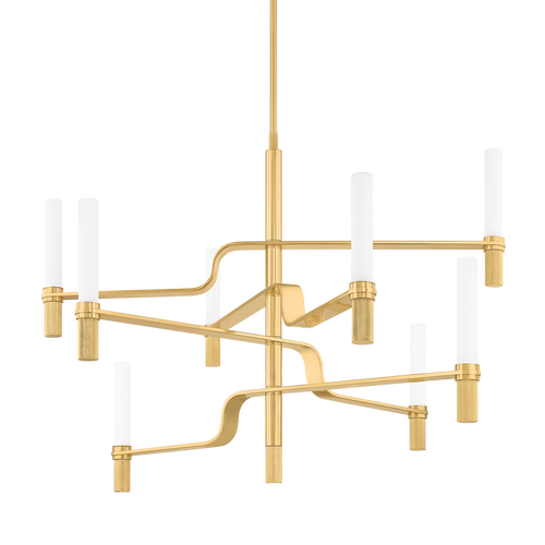 Layers of curved metal framework wisp around to create the organic body of the Hathaway chandelier. The hallmark of this design is the stunningly shaped candlestick holders that drip from the frame. A single elongated stem carries the same fluid design language, connecting all the elements effortlessly. Hathaway is available as a chandelier in two sizes and a 1-light sconce in show-stopping Vintage Gold Leaf and Gesso White.