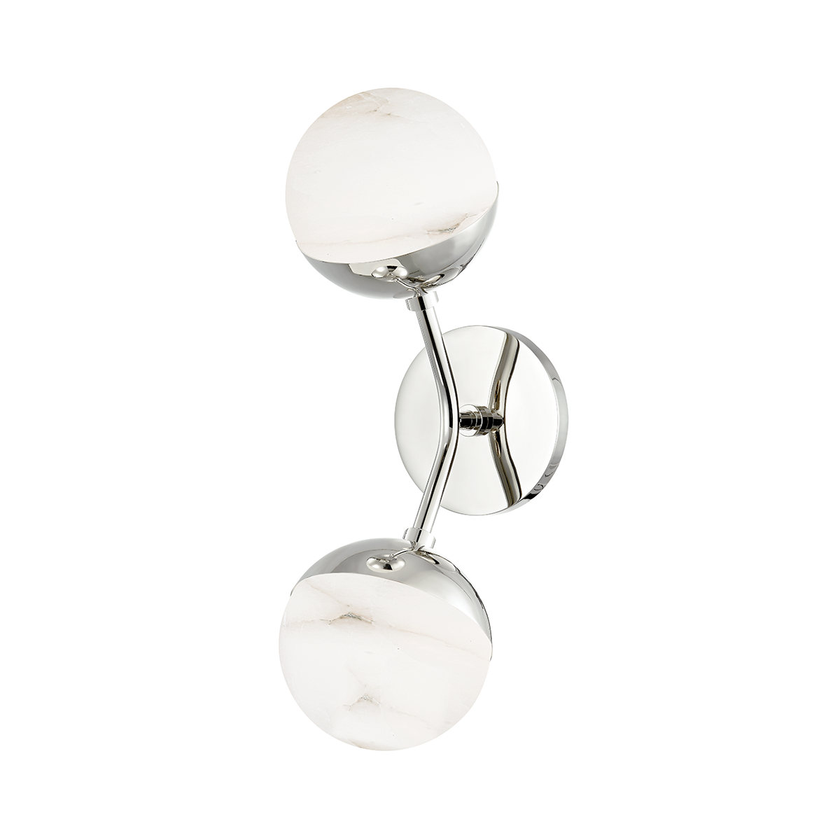 Modern in form, yet retro in style, Saratoga takes globe lighting to a new level. Whether slightly curved or long and straight, Saratoga's arms perfectly complement its gorgeous alabaster glass globe shades. The clean metal caps and the refined finished on the tails are the finishing touches to this design that works beautifully with any style. Sconces can be mounted horizontally or vertically.