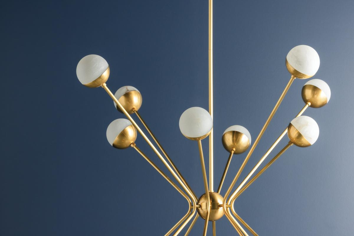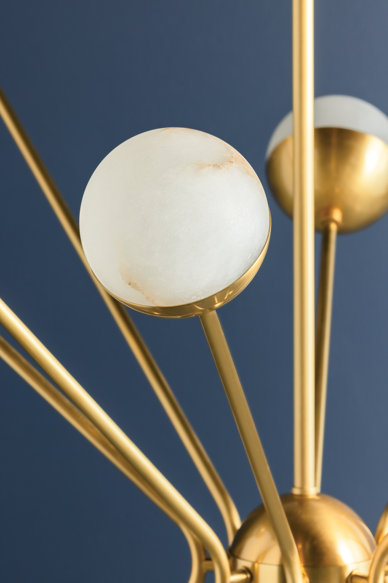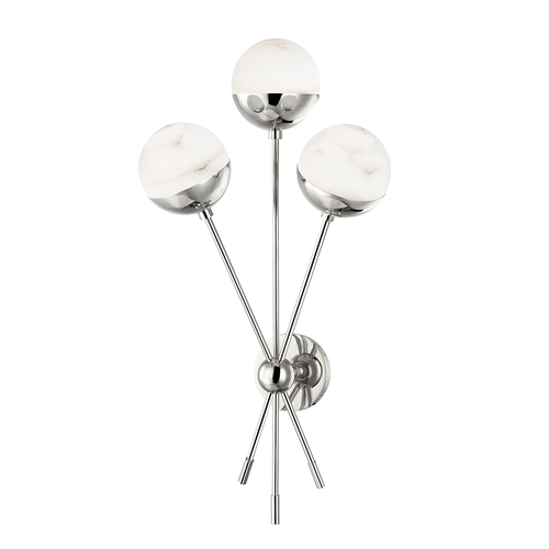 Modern in form, yet retro in style, Saratoga takes globe lighting to a new level. Whether slightly curved or long and straight, Saratoga's arms perfectly complement its gorgeous alabaster glass globe shades. The clean metal caps and the refined finished on the tails are the finishing touches to this design that works beautifully with any style. Sconces can be mounted horizontally or vertically.