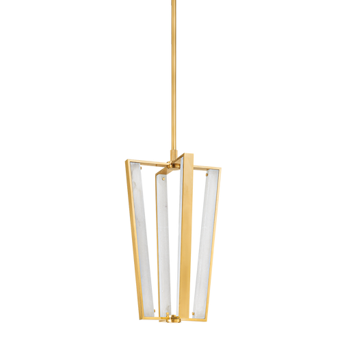 Inspired by a lantern, Tournu features an open cage-like silhouette with LED lining its interior. It is elegantly suspended from the ceiling by a single sleek rod, illuminating a wide area. Available in two sizes with the choice of an Aged Brass or Matte White Acrylic finish, it adds an artful note to living and commercial spaces.