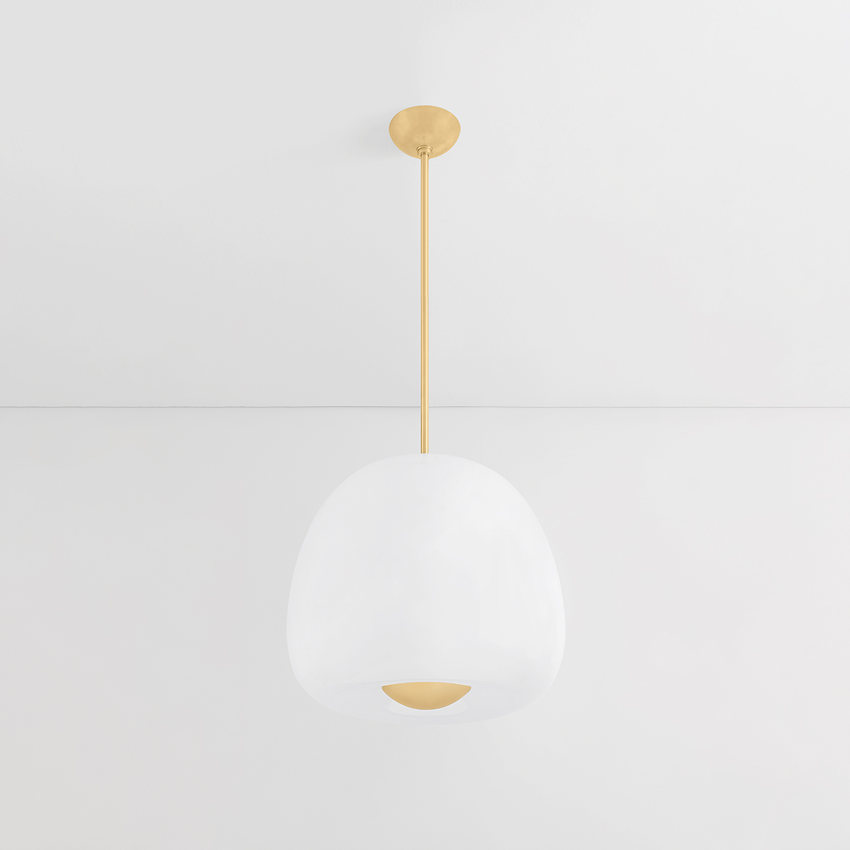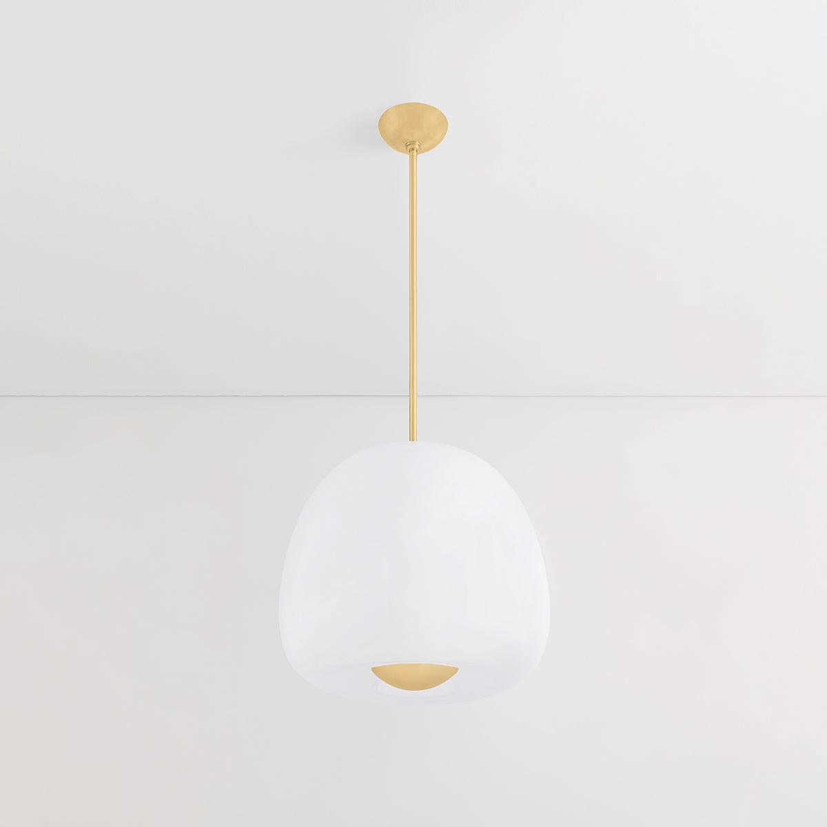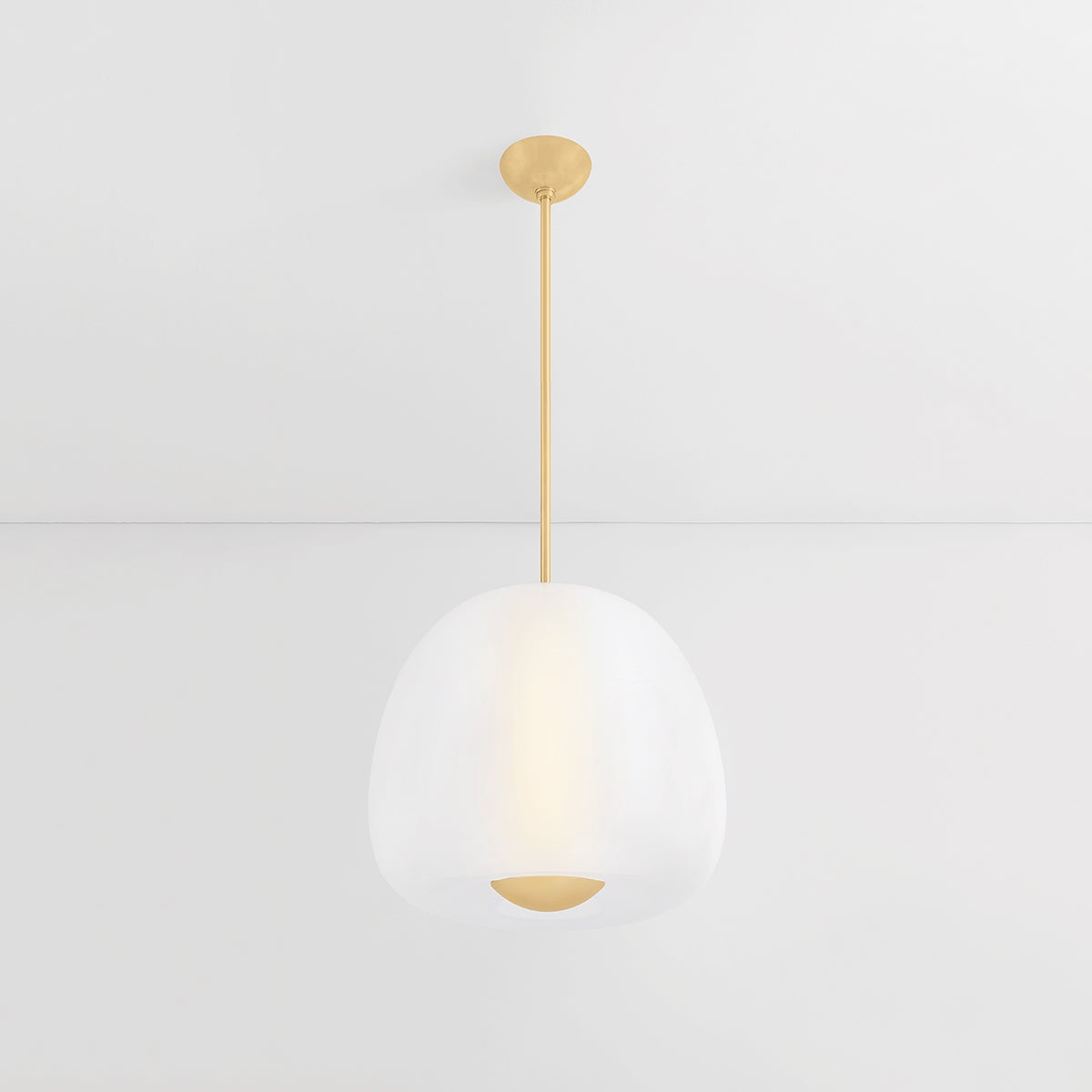 Inspired by the shape of an apple, Scranton features a softly defined outer layer of etched glass and a narrow ‘core’ of shiny opal glass within. The freshness of the organic silhouette, paired with the sleek glass layers and metal accents, makes it perfect for a dining room or kitchen. Scranton is available in two sizes and two finishes, Aged Brass and Old Bronze.