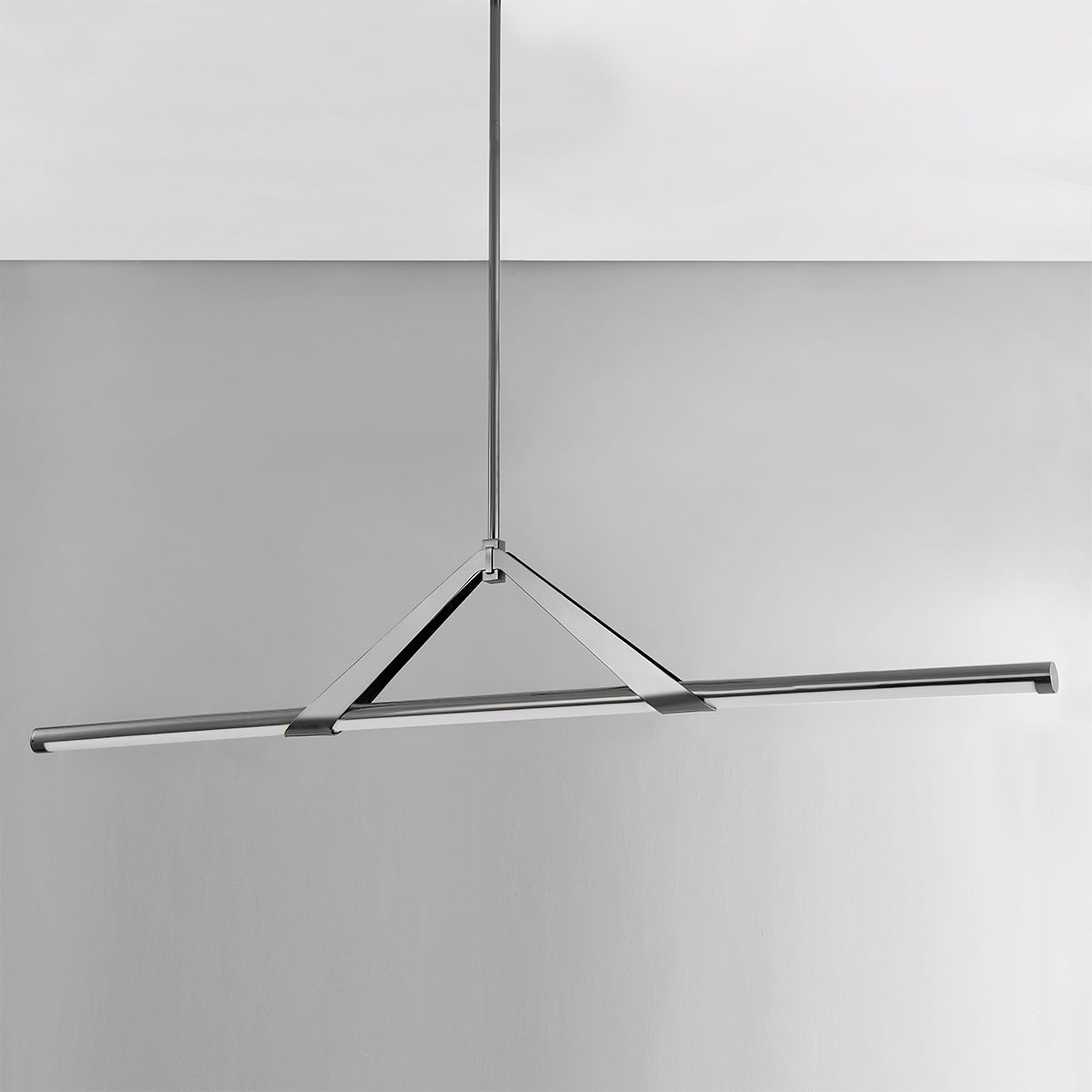 Elevated and updated, Jonas is next-generation LED lighting. Straight, streamlined arms are held in place by tapered metal straps that maintain the sleek silhouette while giving the fixture a sense of movement. Choose from the smoky metallic Black Nickel finish or the clean and polished Aged Brass.