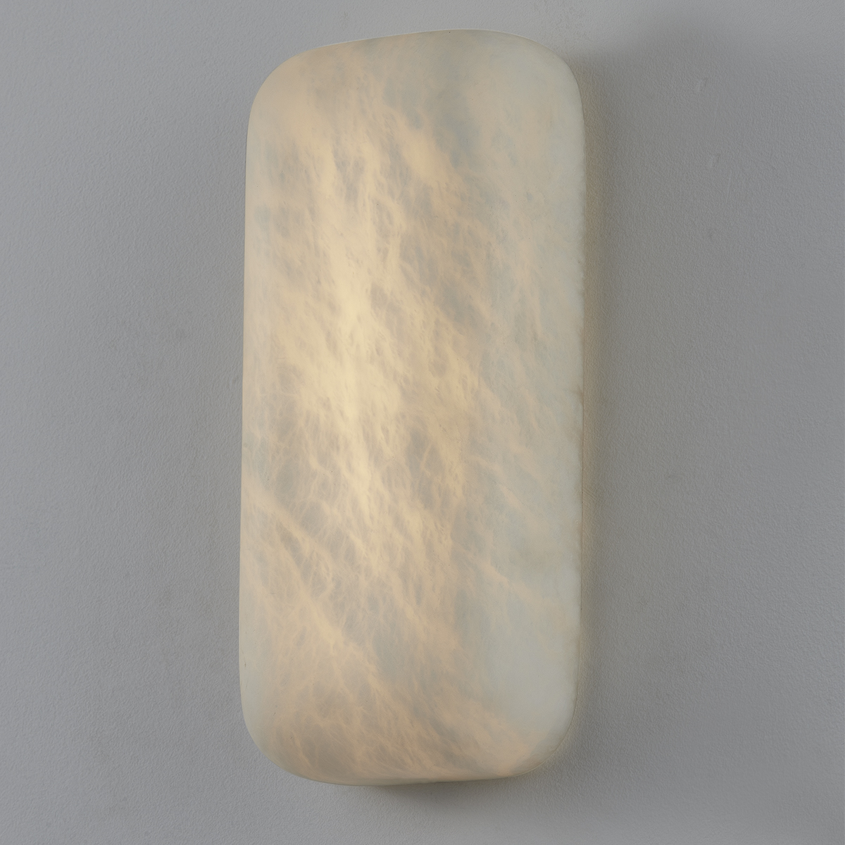 Grand Central is all about chubby comfort. The softness of alabaster, paired with smooth, rounded shapes, adds a softness to this simple cloud-like sconce, deemed the alabaster pillows.