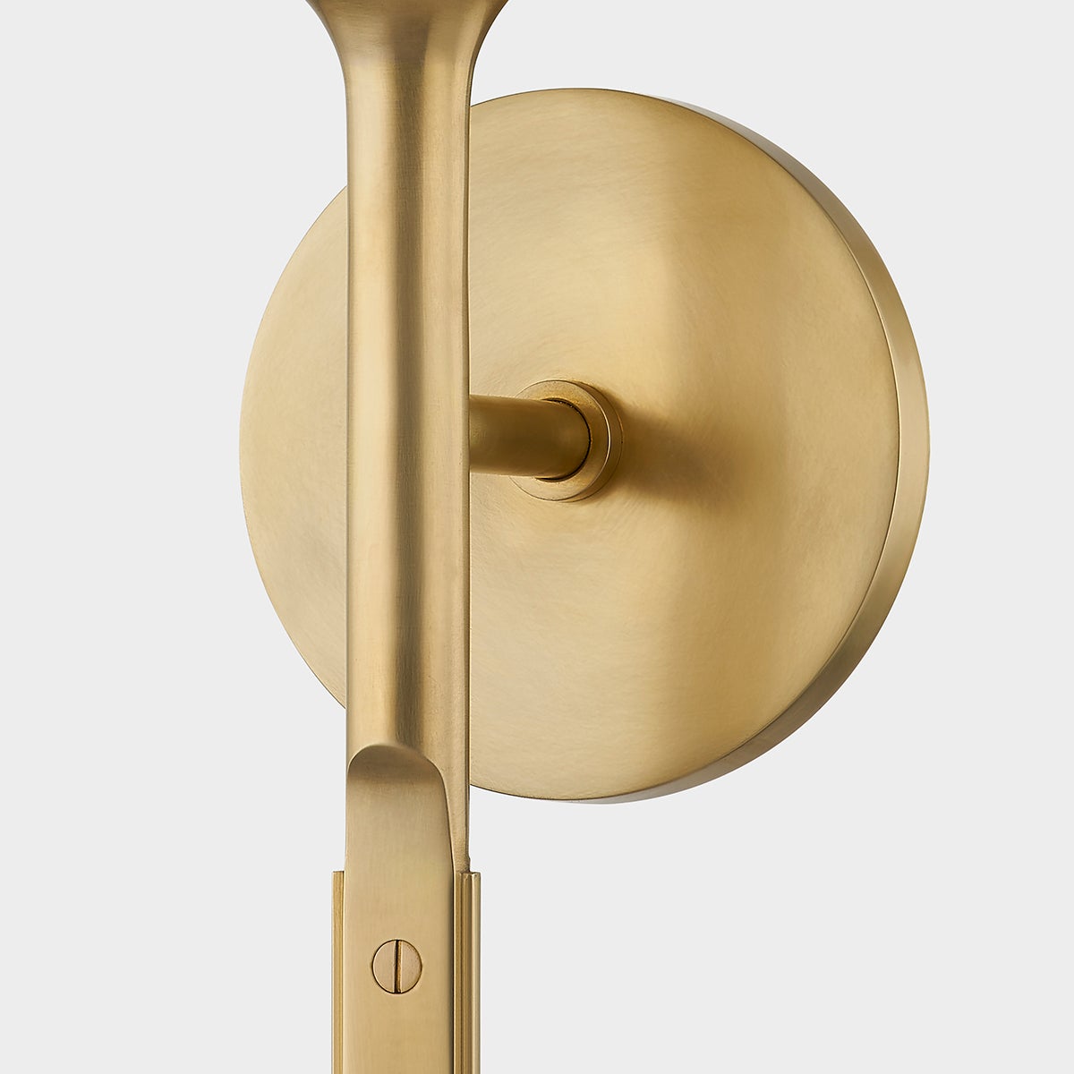 The definition of well-made, modern style, Brewster combines clean lines, a slim profile and monochromatic metal finishes with thoughtful details that give the piece its tailored look. As the metal stem transitions from smooth to flat, a pair of faux nail heads give it a handcrafted, jewelry-inspired feel. Available in Aged Brass, Old Bronze, and Polished Nickel.