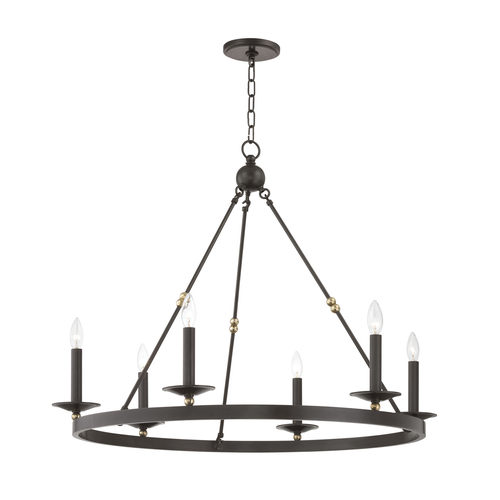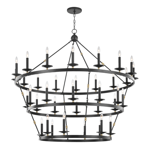 Streamlining a wagon-wheel chandelier with hook-and-hoop rods, Allendale breathes new life into a classic. Available in one-to-three-tier and rectangle versions, its sphere details and vastly different finishes refine the rustic.