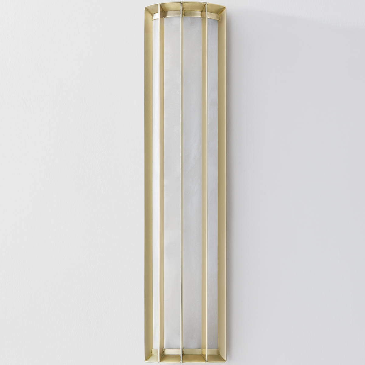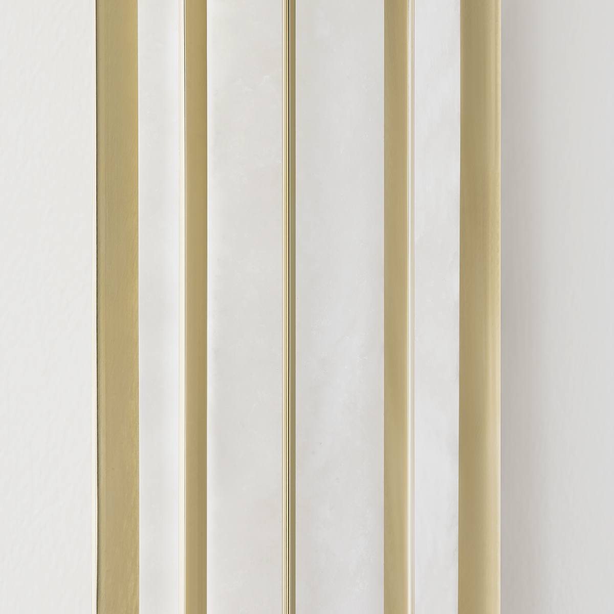 An alabaster diffuser wrapped in a Vintage Brass framework gives this design its luxurious architectural aesthetic. The straight lines of the metalwork create a modern, column-like framing that feels both nostalgic and new. An LED illuminates the alabaster from within filling the entire piece with a soft glow.