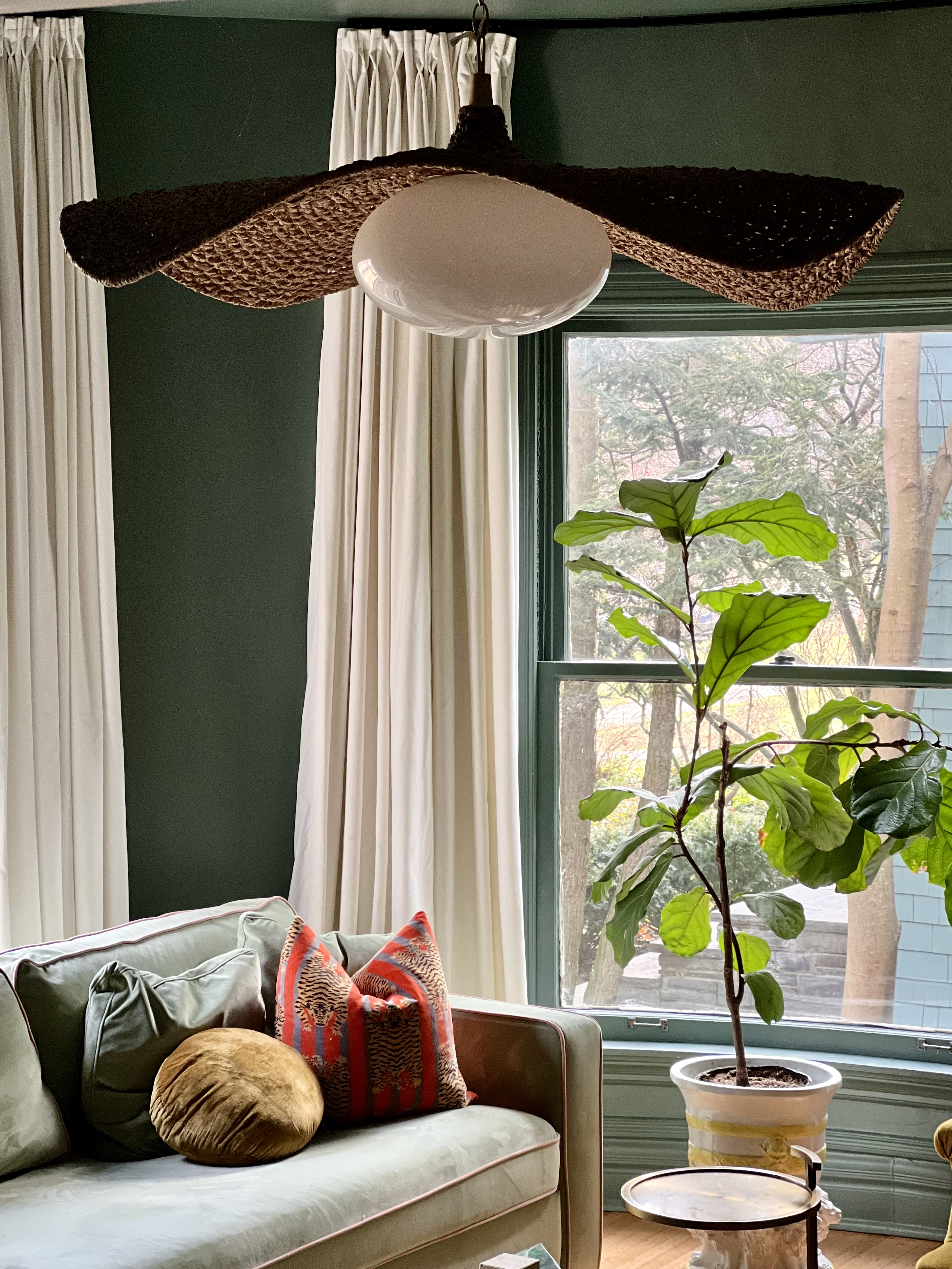 Inspired by the silhouette of an oversized straw hat, Levene features a large Abaca Rope shade over an opal glossy glass globe. The Vintage Gold Leaf metalwork pairs perfectly with the organic vibe of the rope and adds a touch of luxury. The wavy lines of the shade create a sense of motion overhead and bring an airiness to the design.
