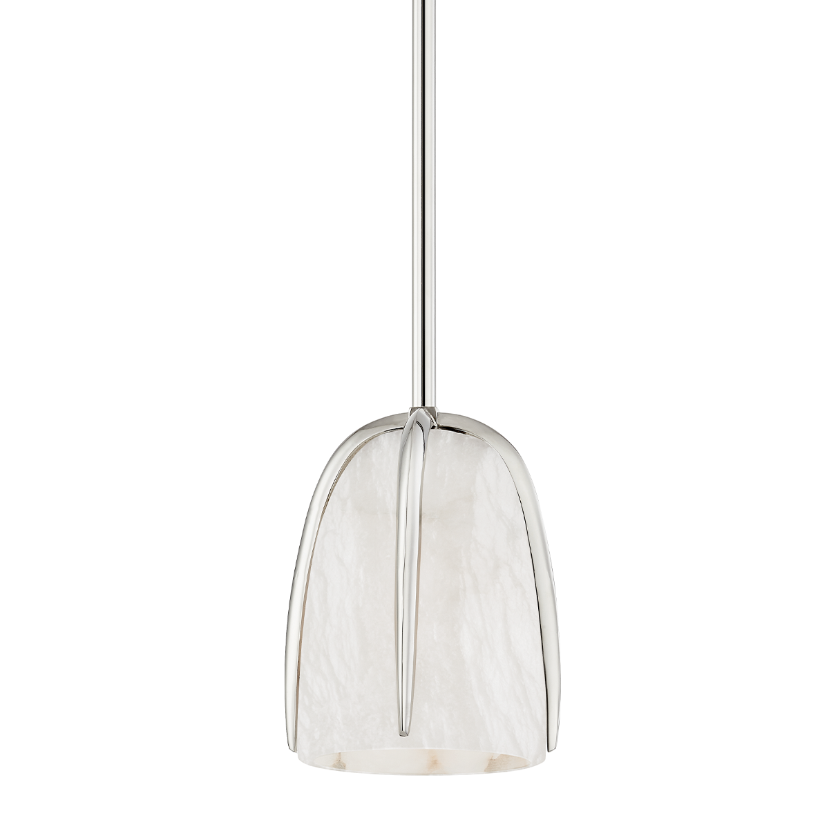 Smooth, curved metal arms cradle Spanish white alabaster shades giving Wheatley a soft, subtleness that works with any design style. Candelabra LEDs illuminate the alabaster and cast light down from the 7" pendant or up from the 22" pendant, semi-flush and sconce. Choose Aged Brass or Polished Nickel.