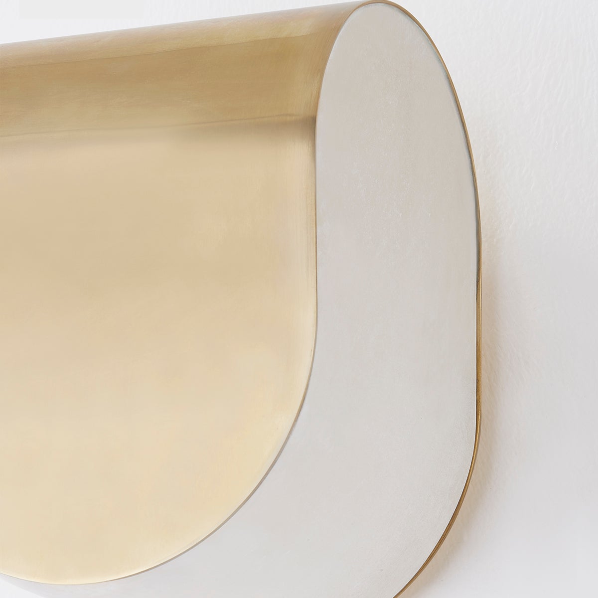 The lines of a curved piece of Aged Brass or Black Brass flow effortlessly into the smooth lines of an alabaster shade creating a sleek, modern form that draws the eye. Light fills the alabaster and emits a soft glow from the sides of the fixture. This versatile sconce is available in both a slender and stout shape and can be mounted for uplight or downlight.