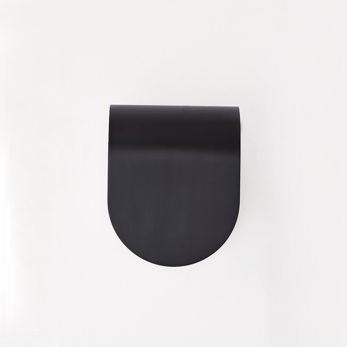 The lines of a curved piece of Aged Brass or Black Brass flow effortlessly into the smooth lines of an alabaster shade creating a sleek, modern form that draws the eye. Light fills the alabaster and emits a soft glow from the sides of the fixture. This versatile sconce is available in both a slender and stout shape and can be mounted for uplight or downlight.