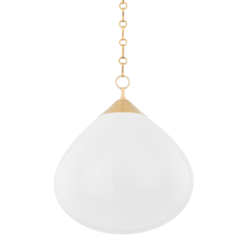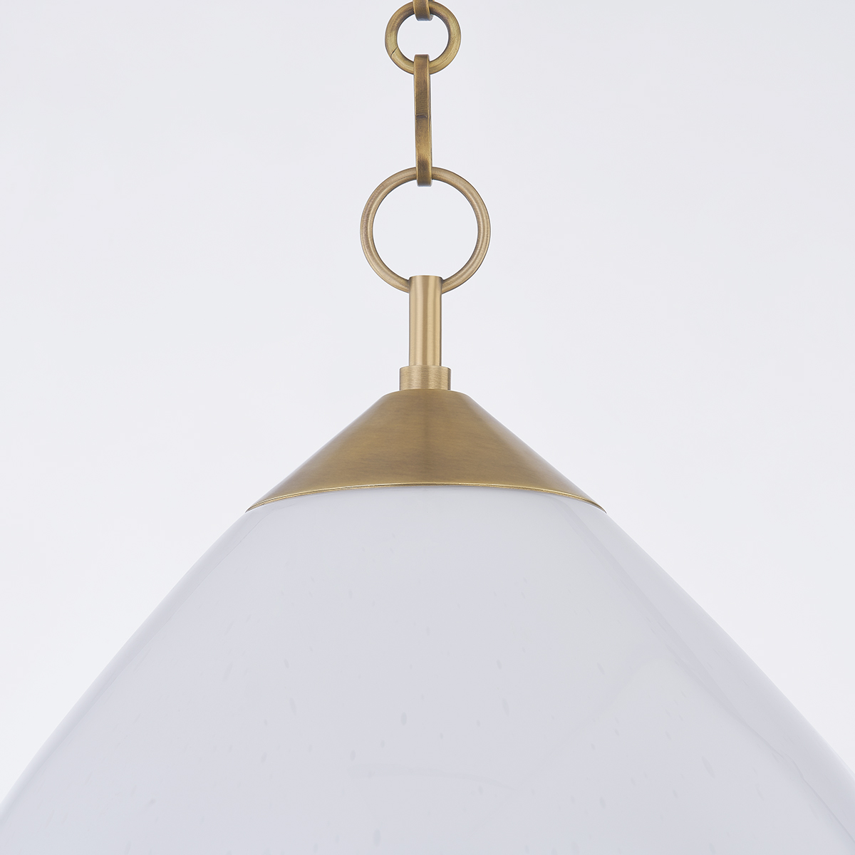 Semilla takes the basic beauty of a teardrop pendant and elevates it with opal seeded glass and a Vintage Brass cap and chainwork. The seeded glass shade is simply stunning when lit. With its soothing shape and luxurious materials, this pretty pendant is the perfect way to add a touch of elegance to any interior.