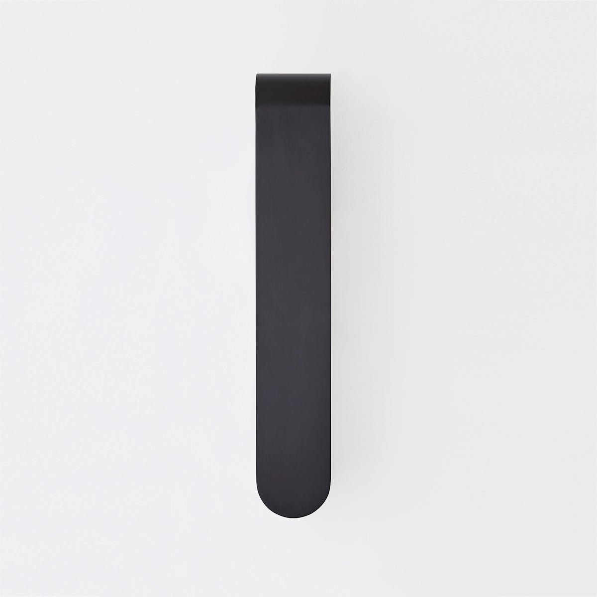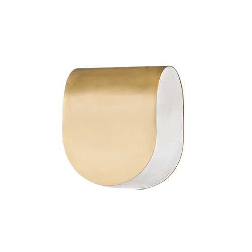 The lines of a curved piece of Aged Brass or Black Brass flow effortlessly into the smooth lines of an alabaster shade creating a sleek, modern form that draws the eye. Light fills the alabaster and emits a soft glow from the sides of the fixture. This versatile sconce is available in both a slender and stout shape and can be mounted for uplight or downlight.