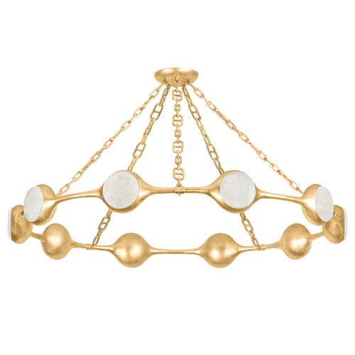 Inspired by the tropics, this large-scale chandelier exudes coastal elegance. The classic donut-shaped shade is adorned with hundreds of handmade wood beads in a light brown hue recalling sand and shells. Chunky Vintage Gold Leaf chains complete this bohemian-inspired chandelier, which comes in two sizes.