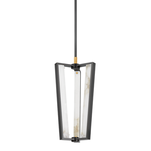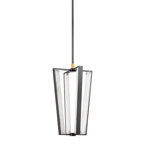 A modern ‘air lantern’ design with a bold architectural silhouette. In lieu of a central light source, LED strips are integrated into the cage of Edgemere itself. A rectangular panel of alabaster is attached to each arm, creating a geometric array of light within the piece. The sleek mixed materiality feels grand and traditional with a futuristic edge. Available in a 3 or 4-light pendant in Aged Brass or Aged Brass and Distressed Bronze or a single light sconce in Aged Brass or Distressed Bronze.