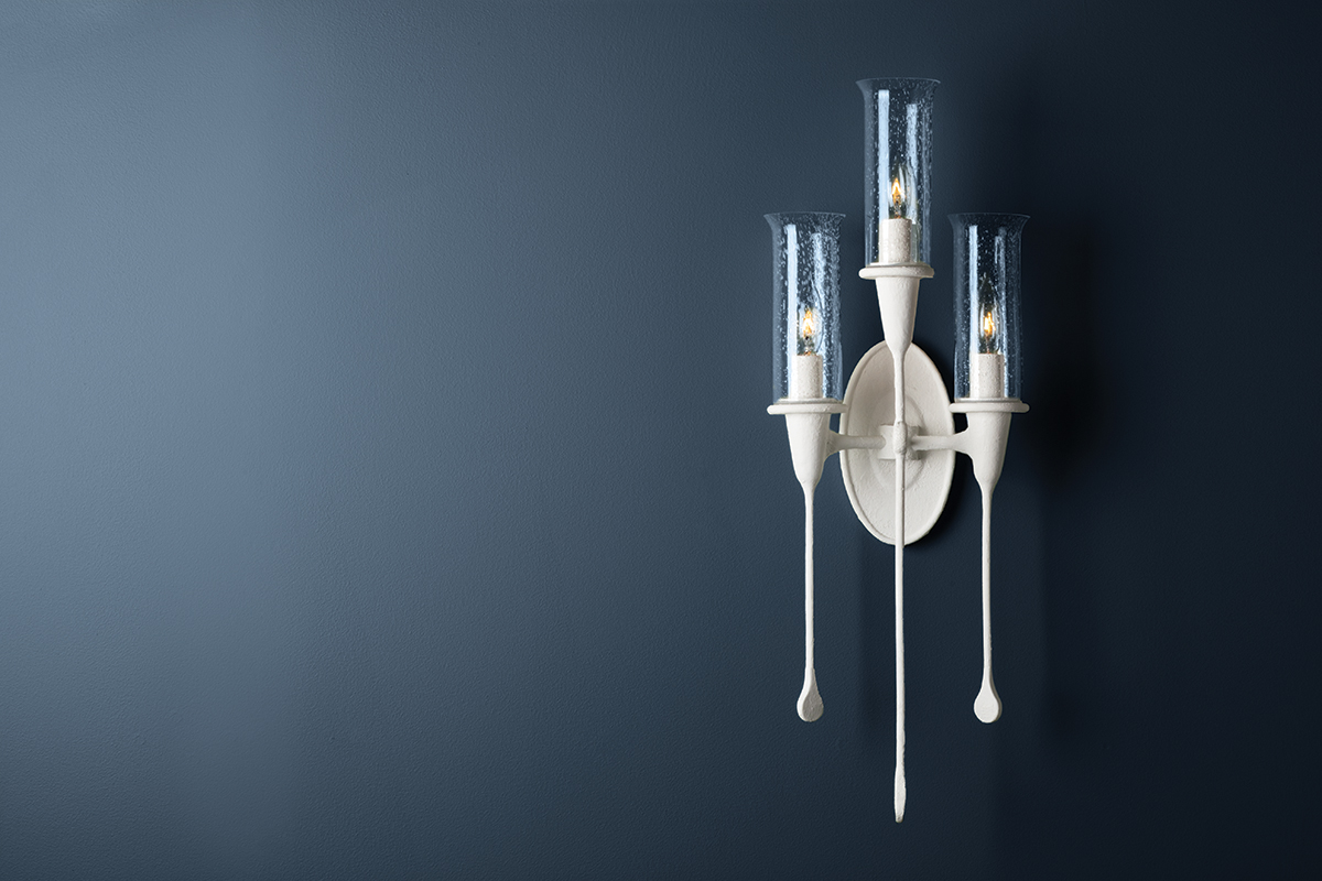 Part light fixture, part work of art, Chisel simply oozes style. A stunning conversation piece, the holder extends down, creating a long, dripping form that demands attention. The clear glass shades allow this hand-crafted piece to shine even brighter. Choose from Black Iron or White Plaster to match any color scheme.