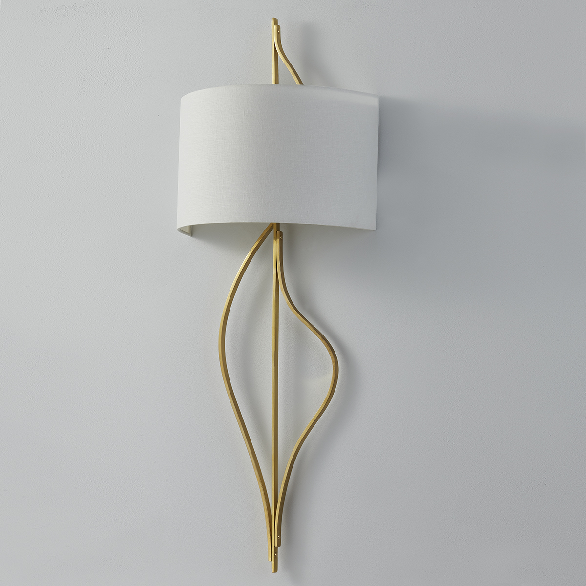 Open and airy, Akina has a wave-like feel that ebbs and flows around the White Linen half-shade. The large-scale and sculptural form gives this sconce an elevated feel.