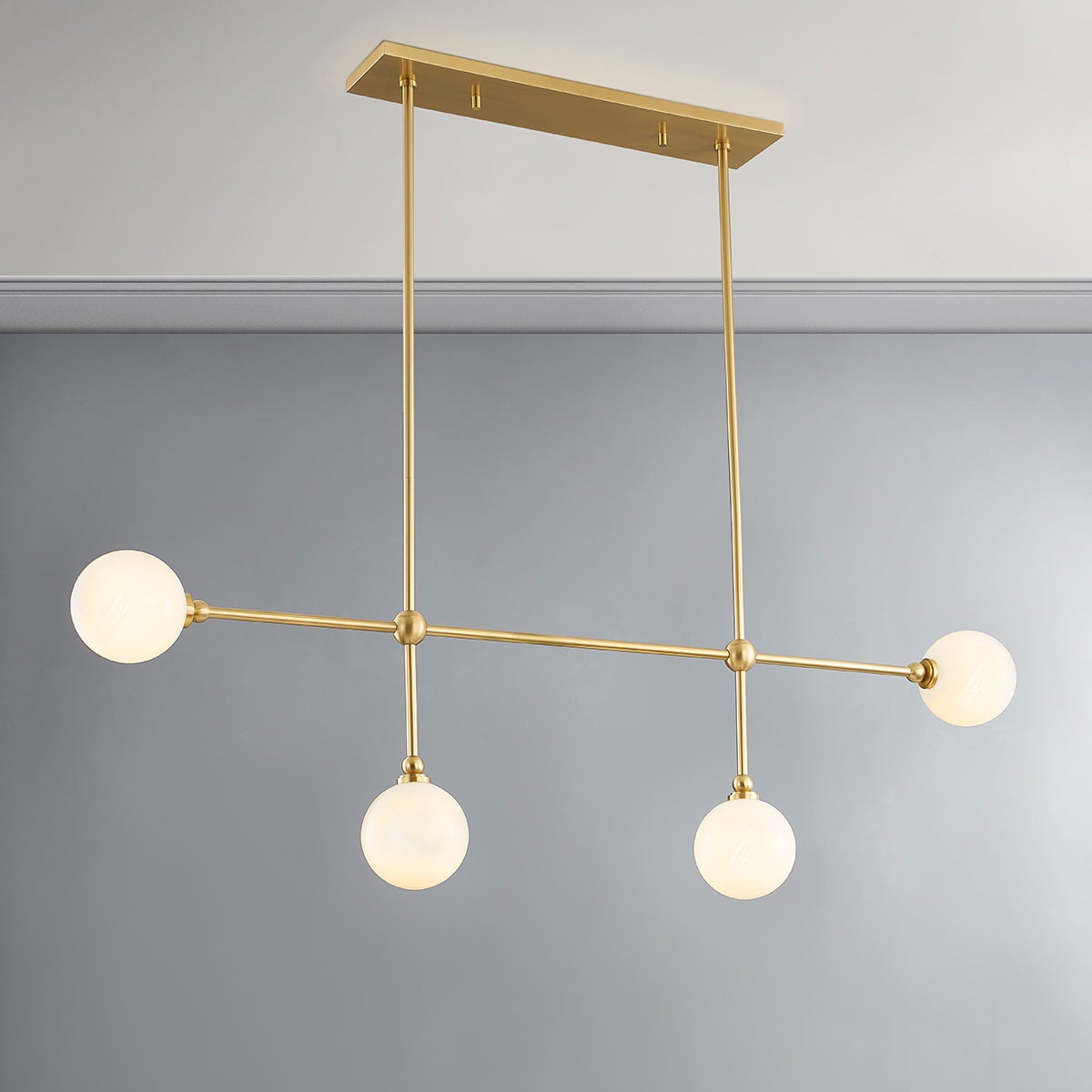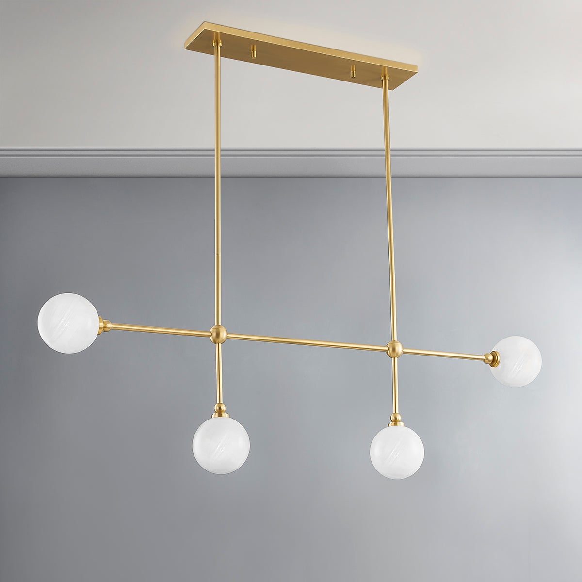 Cloud etched glass globes cap slender baton-like Aged Brass arms, adorned with matching metal orbs, to create a streamlined modern design. As the name suggests, the cloud etched glass creates a wispy cloud-like pattern inside the glass globe shades that fills with a warm glow when lit. The sconce is also available in a Polished Nickel making it a good choice for the bath.