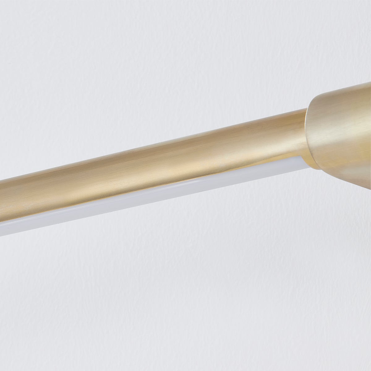 This sophisticated picture light pairs modern design with thoughtful functionality. The sleek arm back extends from the backplate creating an empty space between the wall and the shade that adds visual interest without detracting from the artwork. Choose from Aged Brass or Old Bronze and two sizes all with adjustable, rotating heads.