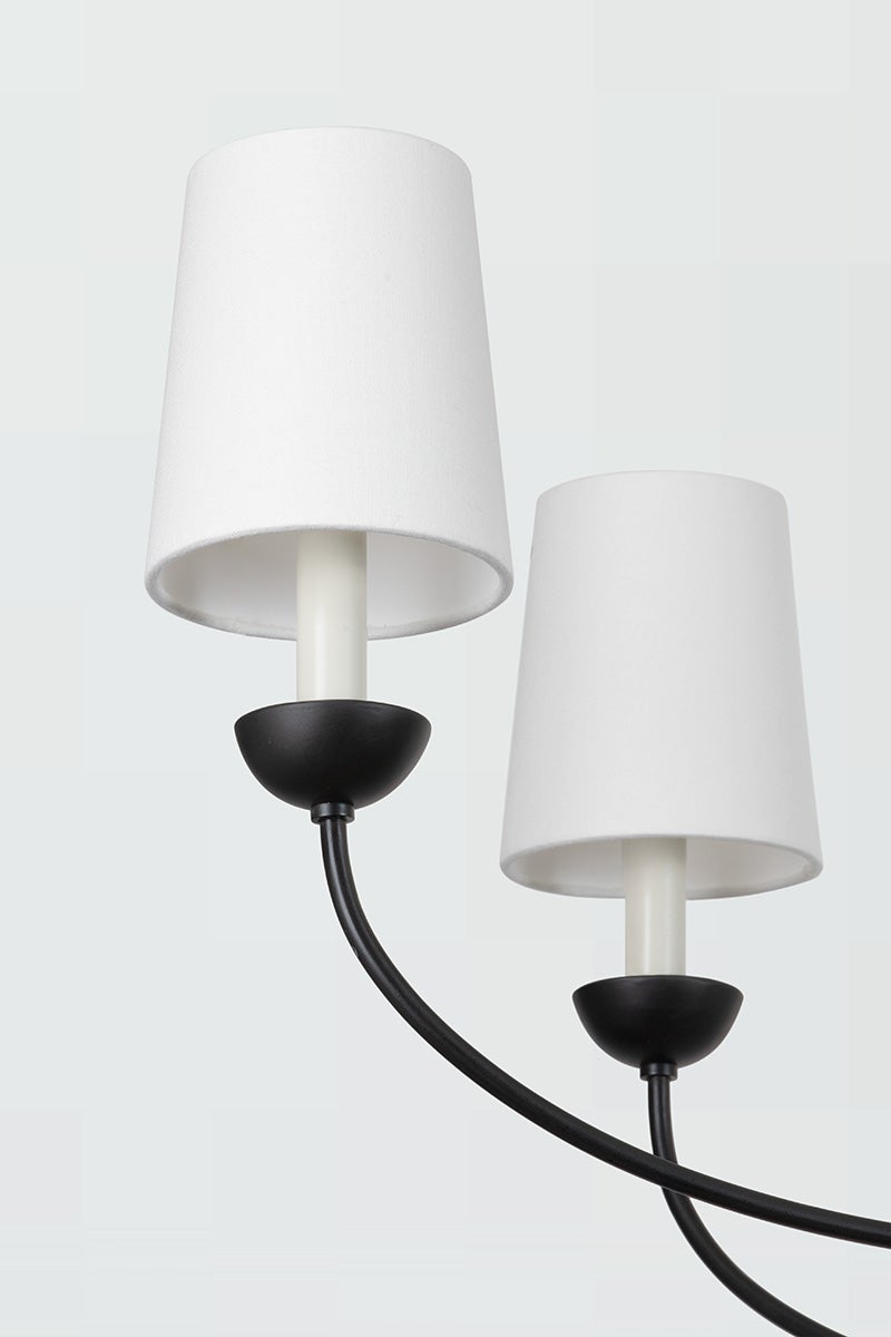 Stylish in its simplicity, the Montpelier chandelier features 5 or 7-candle sleeves topped with tapered white linen shades. A twisted central rod and distinctive hook-and-ring detail offer graceful support to the curved arms of this timeless silhouette. Available in two sizes with a Vintage Gold Leaf or Aged Iron finish, it is an elegant statement piece for a dining room or large gathering space.