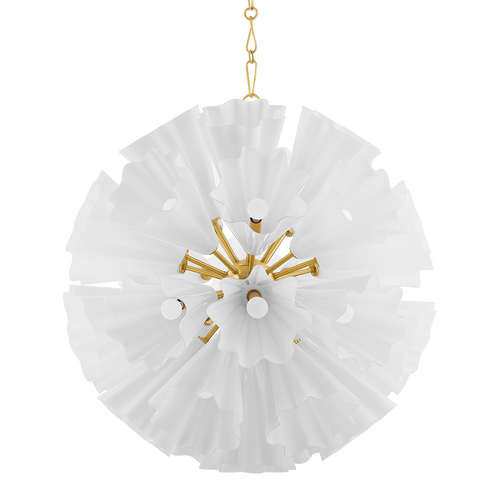 Capri is a beautifully botanical take on the sputnik silhouette. Wavy, floral-like shades of opal glossy glass sprout from a center orb to give the piece a natural, ruffled effect. This large-scale chandelier fills the entire space with a warm, tranquil glow.