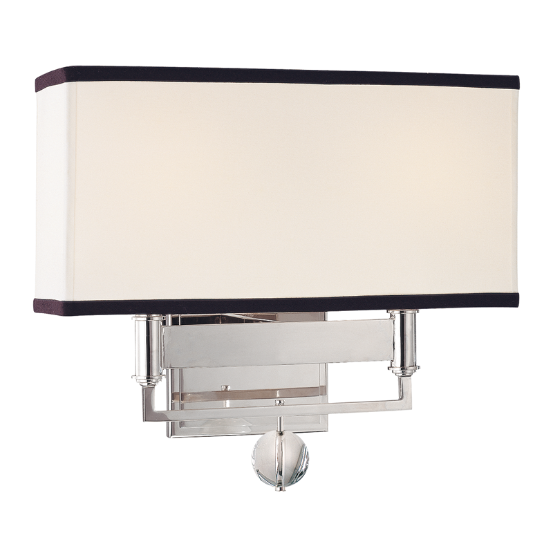 Above a kitchen island, a dining table, or a billiards table, Gresham Park adds a harmonious weight to an important part of your space. Its crystal orb finial plays against the boxiness of its shade and its angular flat arms. Wall sconce versions provide an opportunity to match for design unity. Polished Nickel finish comes with black-trimmed shade and Old Bronze comes with white-trimmed shade.