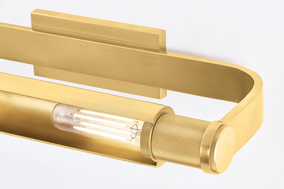 A fresh take on a lighting essential, Elm Park blends innovation and sophistication with its discreet 2-light composition. This picture light features clean lines and machine-knurled details with a choice of an Aged Brass or Distressed Bronze and Aged Brass finish. Choose from two sizes of Elm Park to suit your needs.
