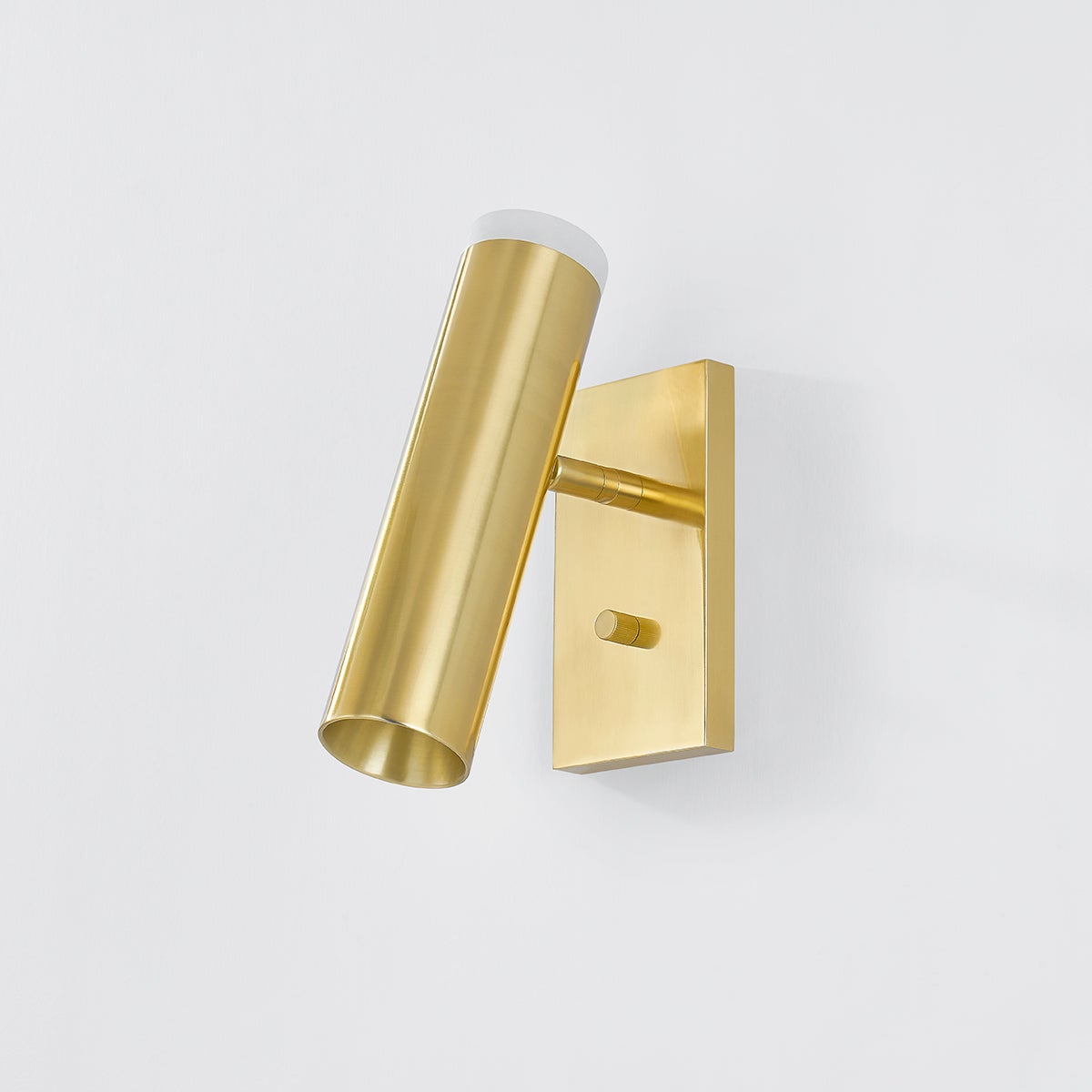 User-friendly and stylish, this design-led wall sconce allows you to redirect light as you please. The timeless Aged Brass finish imparts an air of sophistication to both the fixture and the backplate, which features a convenient turn knob. The swivel head provides easy adujstability, making this sconce an ideal task light.