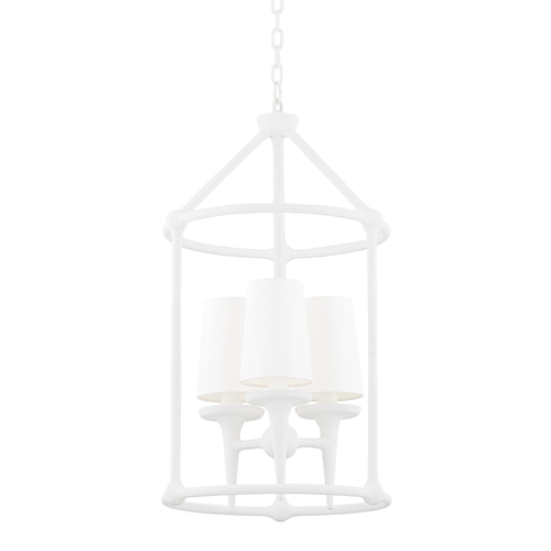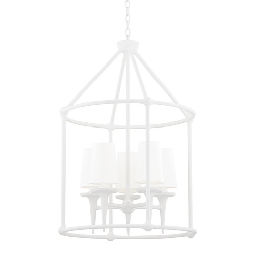 Torch passes new life into traditional shapes, like a wagon-wheel chandelier, cage pendant and recognizable sconce and linear forms. The sleek, sculptural arms make it easy to see how Torch got its name. The white plaster provides a monochromatic matte finish with the Belgian linen shades while the gold leaf adds a bit of shine that complements the white shades.