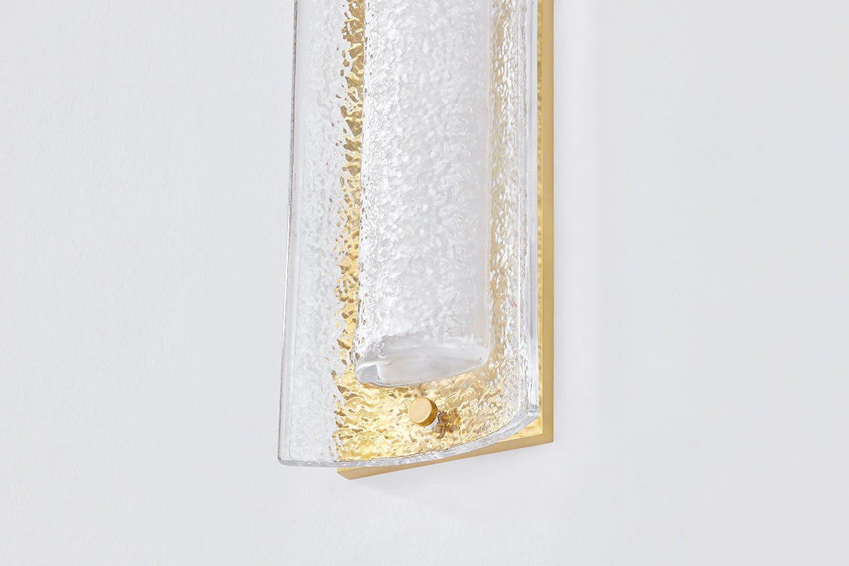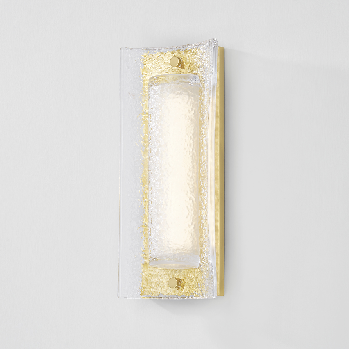 Diffusing soft light through its translucent, ice-like Piastra glass surface, Philmont is captivating in its simplicity. As the glass harmonizes with the Aged Brass backplate, it creates a multi-layered exchange between materiality, texture, and the reflective quality of the fixture. The white glass enhances the gentle illumination provided by the energy-efficient LED lighting, creating a serene glow.