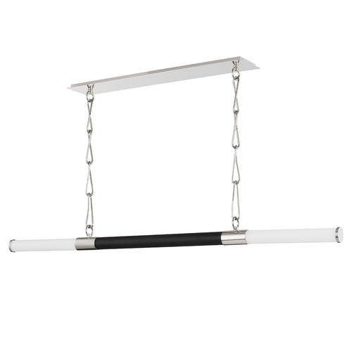 Huntington is linear lighting at its best. Milk glass tubes capped in metal sprout from each end of a similarly capped soft black shade creating a luxe layered look. This streamlined collection has a slender silhouette that works well in any space. Choose from Aged Old Bronze or Polished Nickel finishes with Soft Black accents.