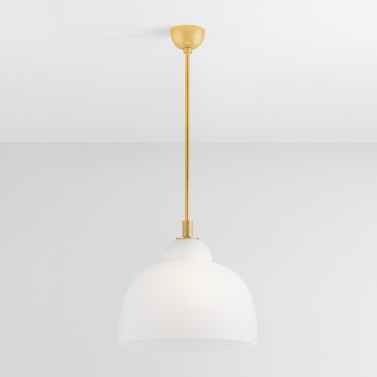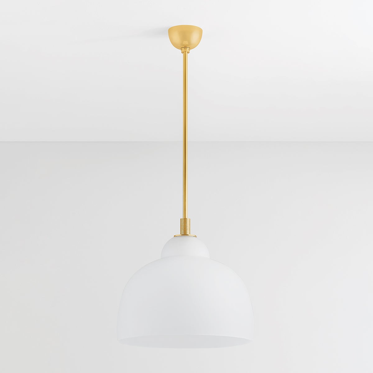 Playing on the layering of glass forms, this elegant pendant concept is a contemporary treasure. The etched outer shade fits seamlessly over an internal glass globe of the same finish, creating a distinctive bubble-like silhouette. Available in two sizes, Oberon floats overhead with serene lightness.