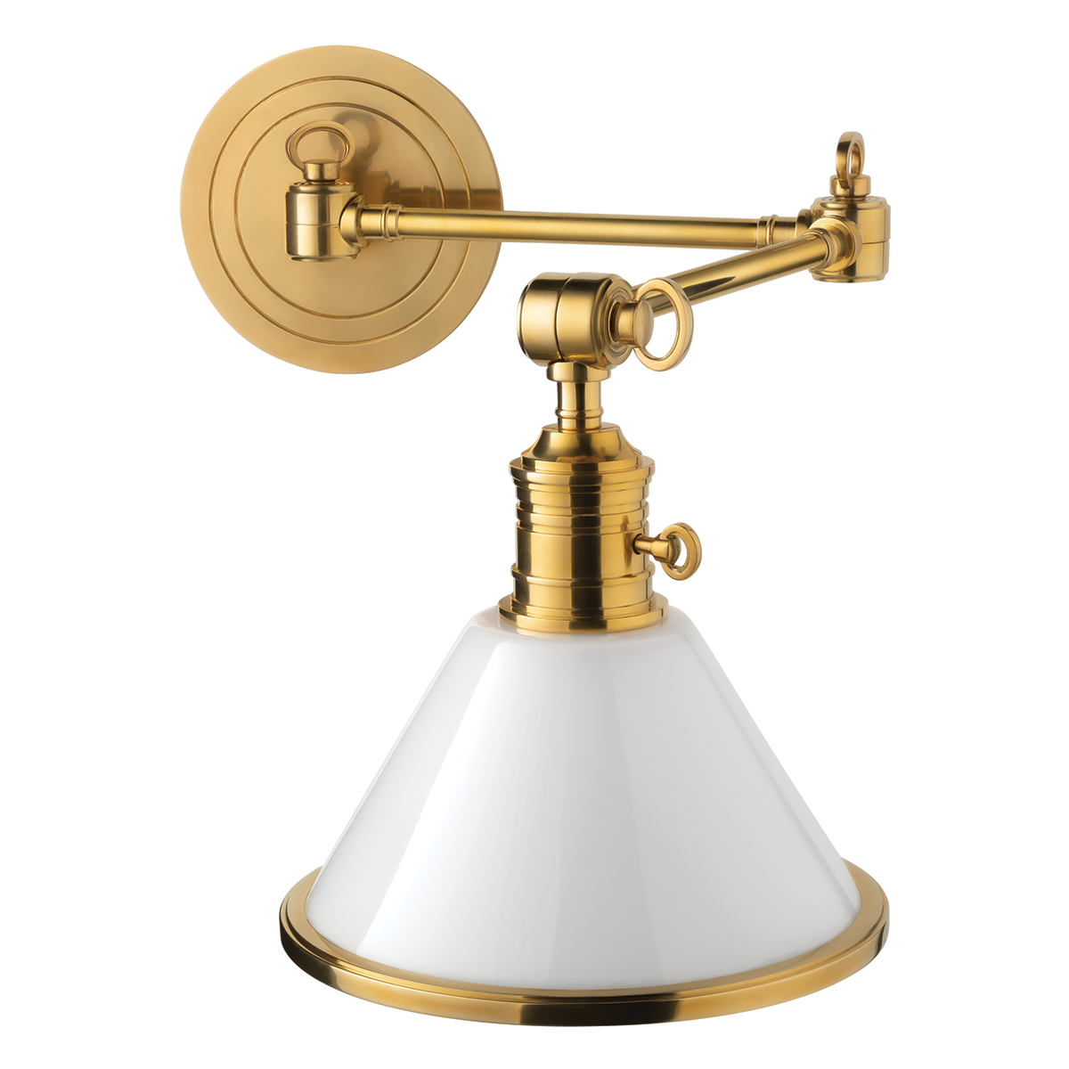 Taking cues from the innovative lamping techniques of bespoke maker brands, Woodrow features a classic RLM-style pendant silhouette. Beneath the large reflector, the opal shiny shade filters light both downwards and outwards. Three clean chains suspend this fixture, which is available in two sizes.