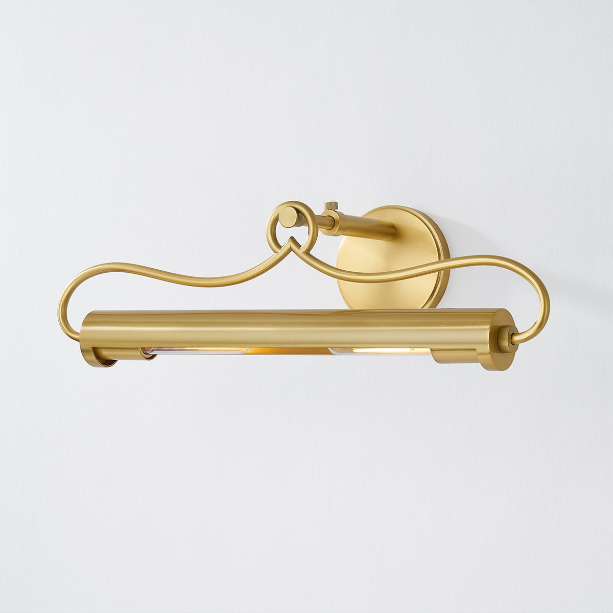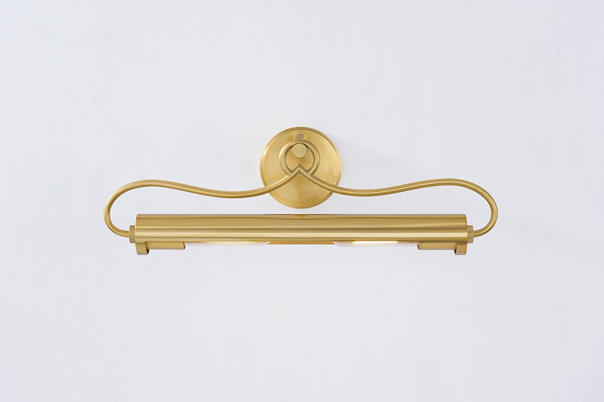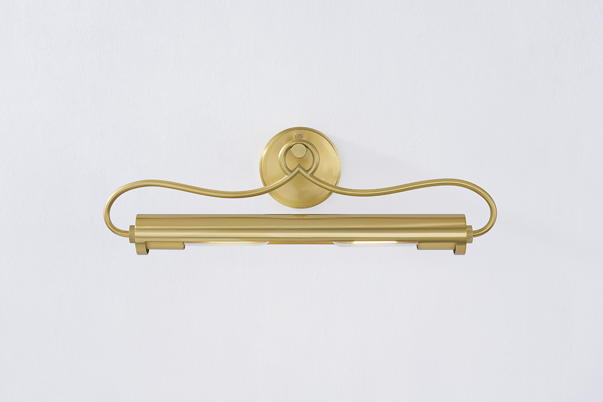 A picture light with refined style, Berun features a slender tube accented by decorative embellishments. Gracefully curved arms support the light while an ornate loop-like finial adds a finishing touch. A sophisticated means of illuminating wall decor, Berun is available in two sizes and two finishes; Aged Brass and Old Bronze.
