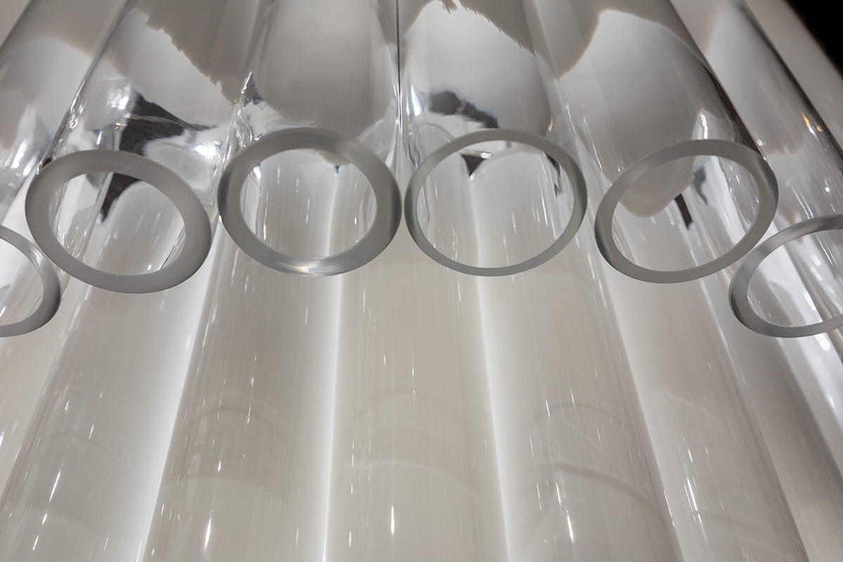 A serene reimagining of a waterfall silhouette, the Tyrell family takes from the grandeur of Parisian design aesthetics and adds unexpected glass techniques. Within the clear glass tubes, a white finish diffuses the light, adding an ethereal beauty to the striking fixtures. While the tiered chandeliers exude drama and decadence, the sconce is equally as special. The frame is finished in Polished Nickel, enhancing the contemporary appeal of Tyrell.