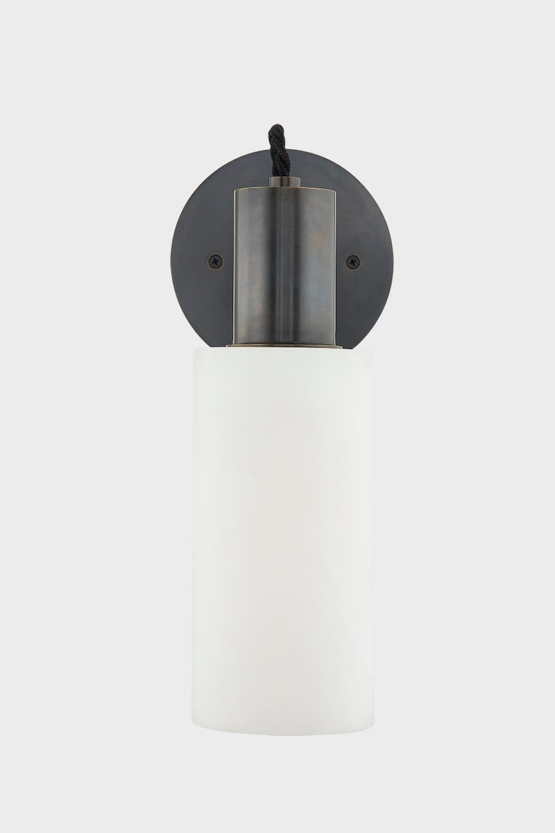 A braided cord, a bit of knurled detailing and an alabaster shade make this streamlined, cylindrical silhouette feel special. Add a modern aesthetic and subtle luxury to the kitchen, hallway and other living spaces with this straightforward, clean sconce. Available in Aged Brass and Distressed Bronze.