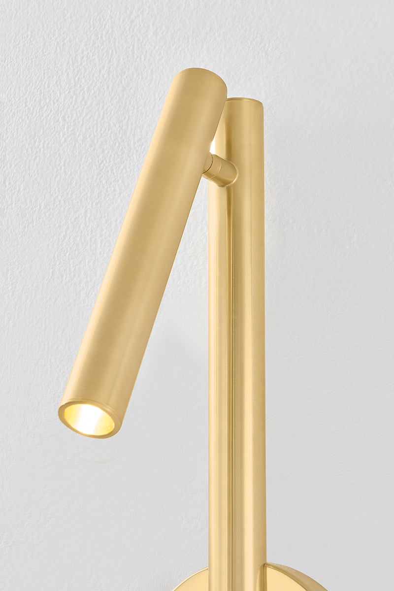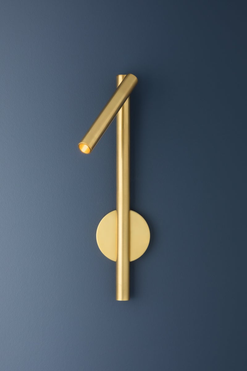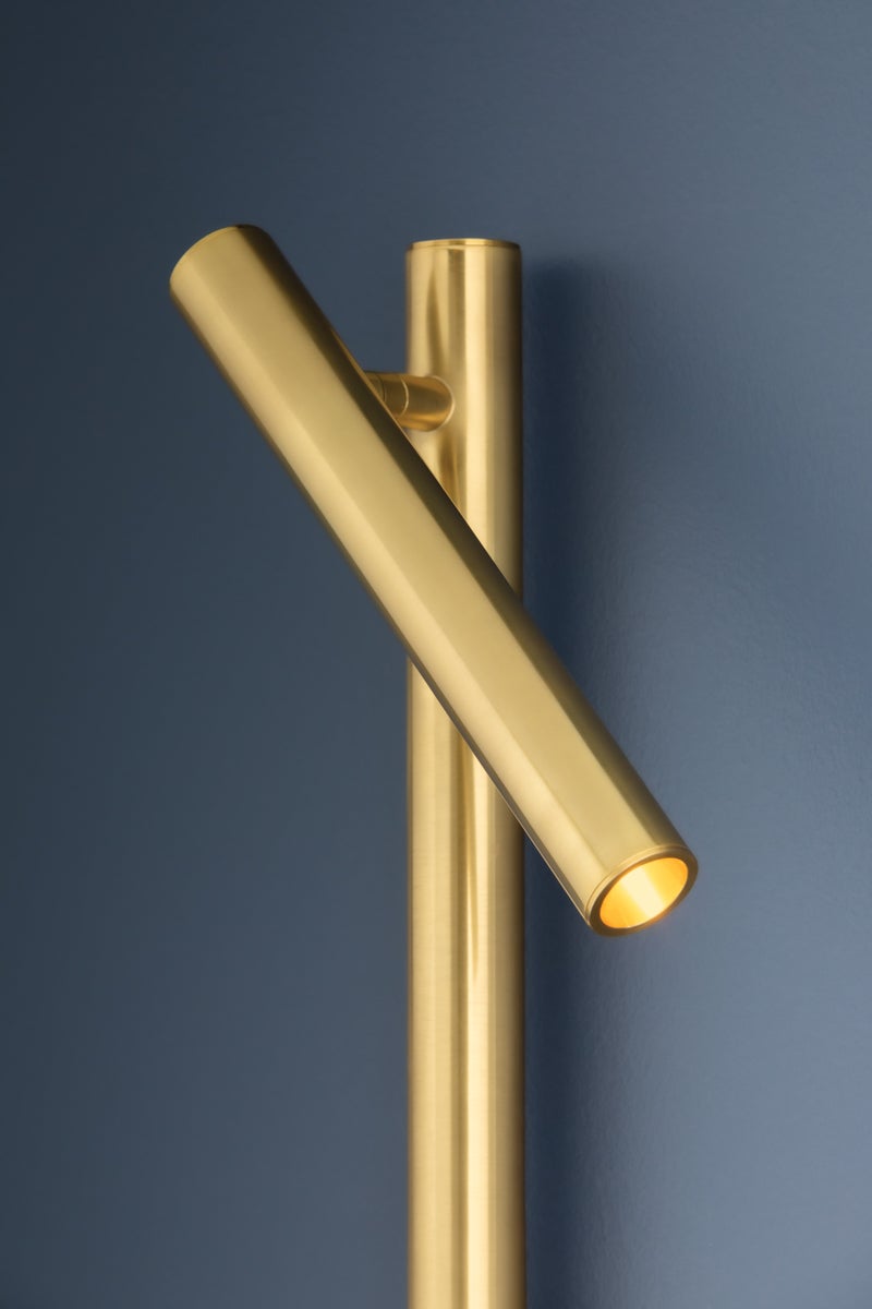 Incorporating CSL’s innovative ‘Whisper’ technology, Circleville cuts a sleek figure in Aged Brass. While it might read as industrial, the elongated tube forms lean towards modernist aesthetics. The articulating shade allows precise control to create a powerful spotlight where needed. Available as a sconce and floor lamp.