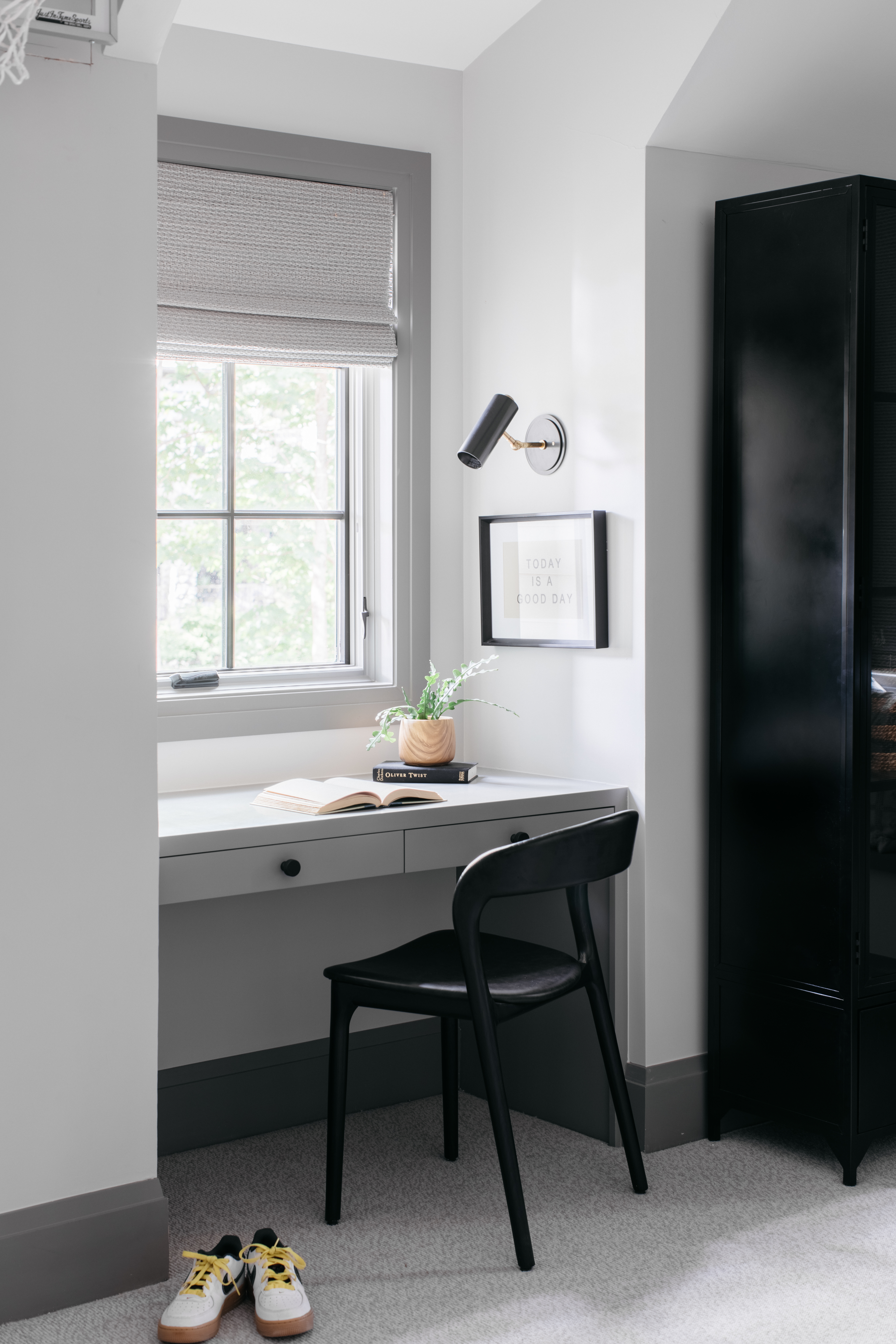 As useful as it is beautiful, this utilitarian wall sconce lets you completely control the light and set the mood. In addition to swiveling up and down, the full-range dimmer on the top takes the light down to 10 percent and back up again. Meant to look handmade, the single shade has a telescope feel that will make Bushwick the star of any space. Available in Aged Brass, Aged Old Bronze and Black Nickel.
