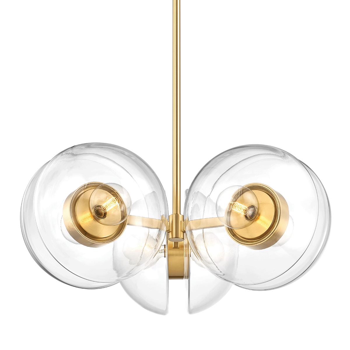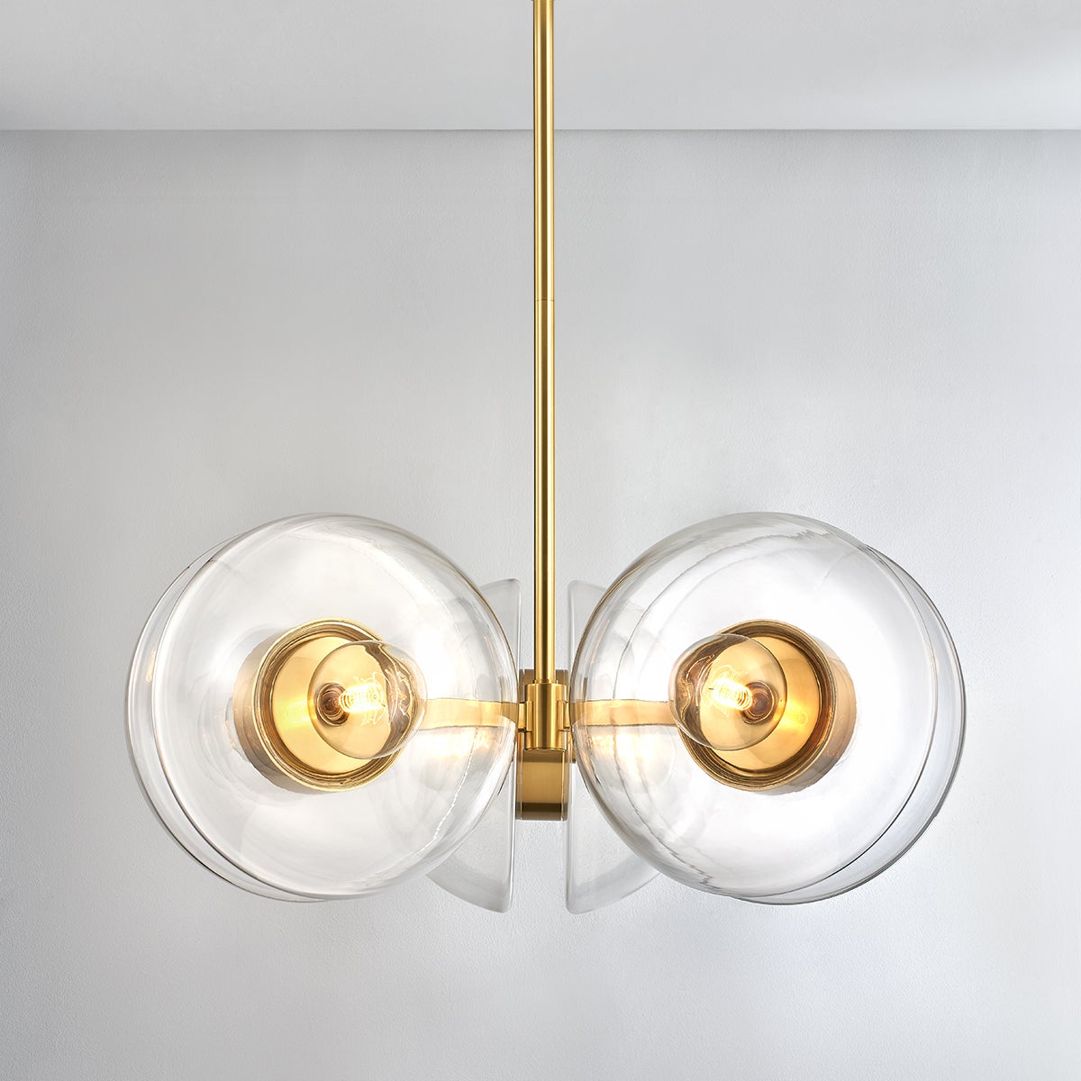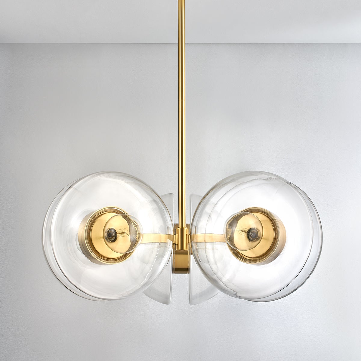 Kert combines glass and metal in a fresh and functional way. A pair of half-round, clear glass shades are enclosed behind the bulb and mounted on a ring of metal at the center, giving the piece an impressive, sculptural feel. Large in scale and highly versatile, Kert is available as a wall sconce that can be mounted vertically or horizontally, a linear, and a pendant and chandelier in two sizes.