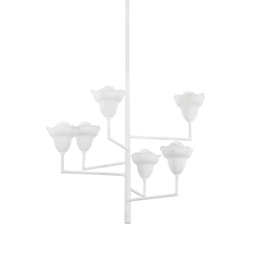 The long, slender branches of the Labra family draw inspiration from underwater botanical forms. Each arm supports a small glass globe shade like a delicate ornament of light. In both the chandeliers and wall sconce, a softly pointed end lends an artistic touch to the overall look. Labra is available in Aged Iron, Vintage Gold Leaf, and White Plaster finishes.