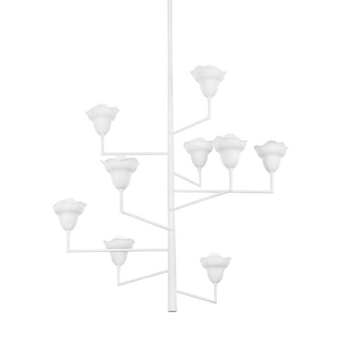The long, slender branches of the Labra family draw inspiration from underwater botanical forms. Each arm supports a small glass globe shade like a delicate ornament of light. In both the chandeliers and wall sconce, a softly pointed end lends an artistic touch to the overall look. Labra is available in Aged Iron, Vintage Gold Leaf, and White Plaster finishes.