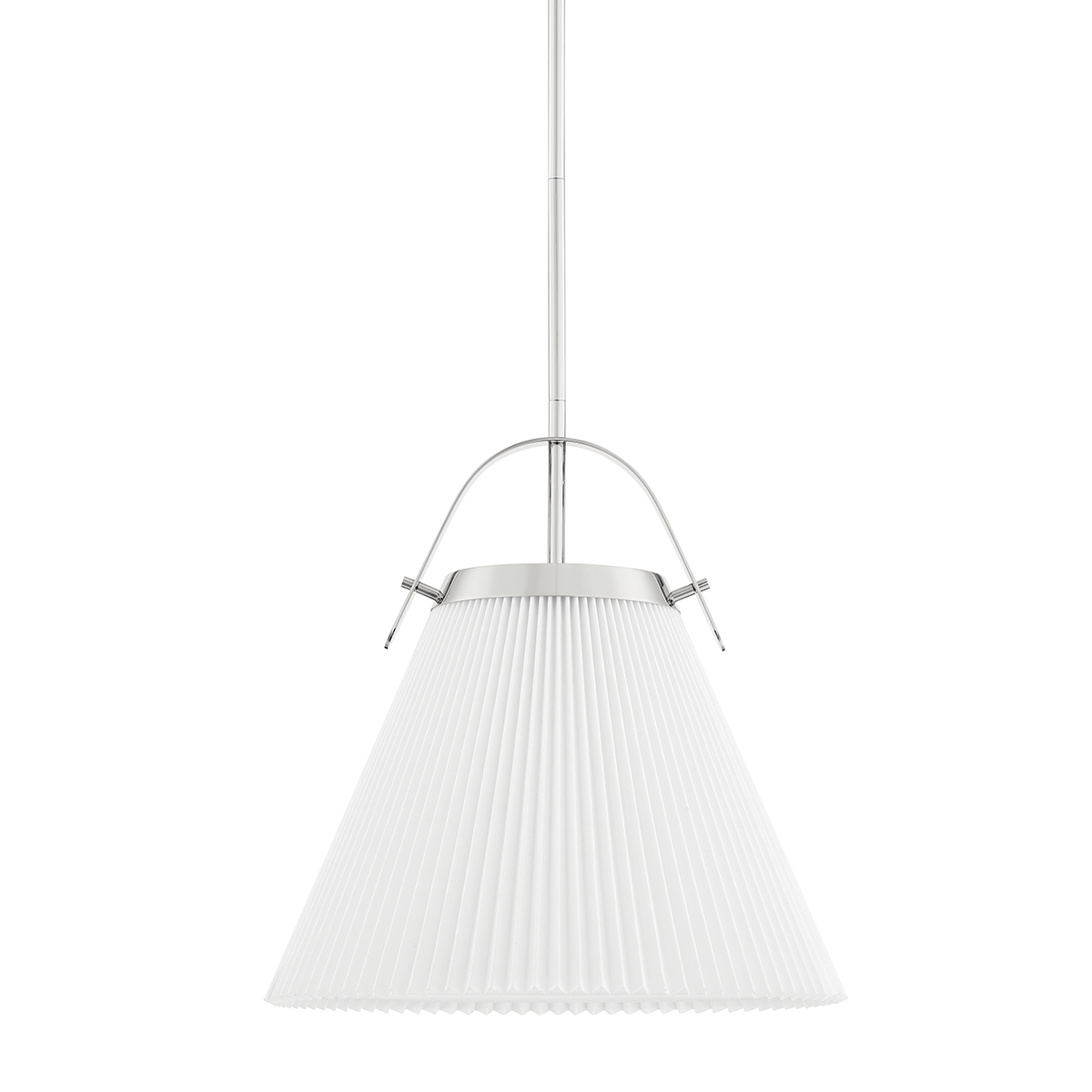 Traditional design with an updated look, Aldridge is pretty in pleats. A metal strap adds a spark of color above the classic cone-shaped shade that's pleated on the outside and smooth Belgian linen on the inside. Bright light spreads down from this highly usable, very adaptable style.
